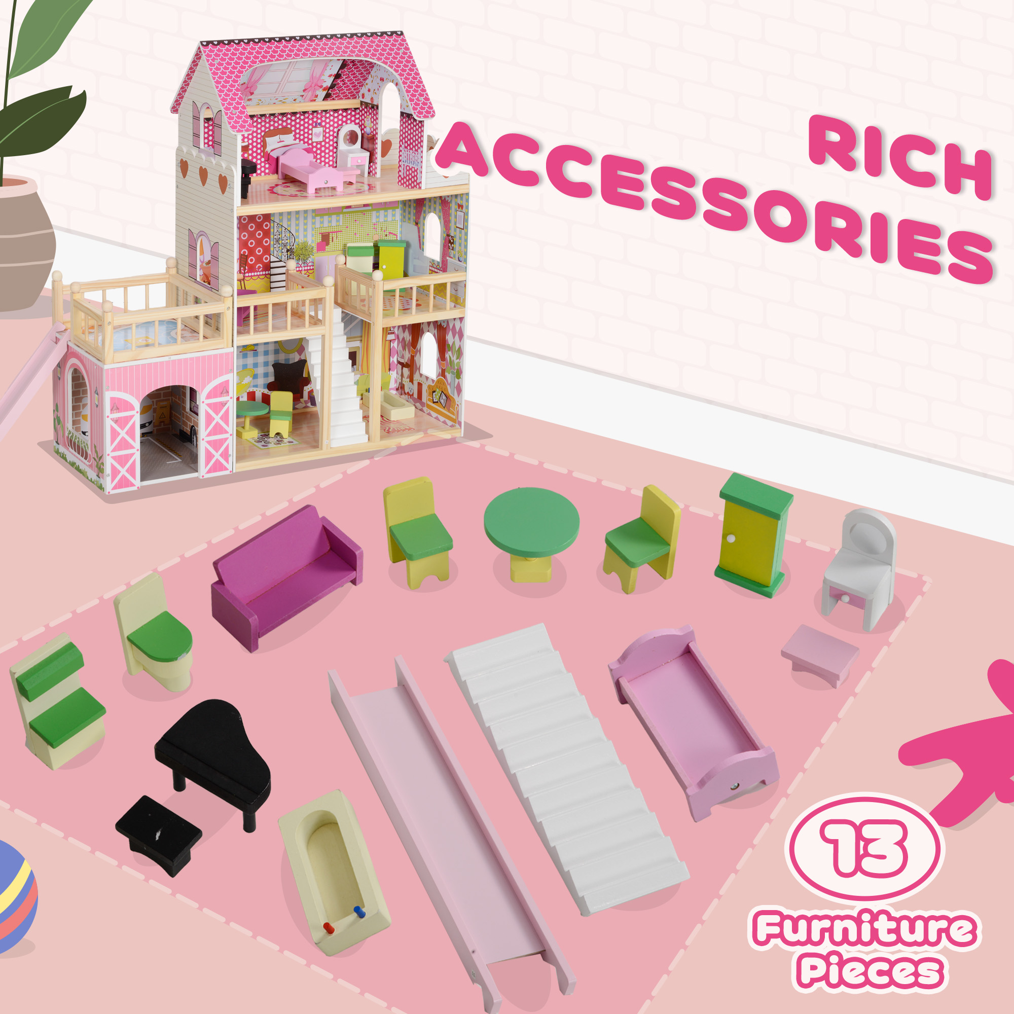 Step into the magical world of the AIYAPLAY doll house! This vibrant three-level toy house, complete with a charming balcony, stands perfectly at 92.1cm high. Great for tabletop play, children can design their own home using the 13 included furniture pieces. It's a delightful way to foster creativity and social skills in young decorators.