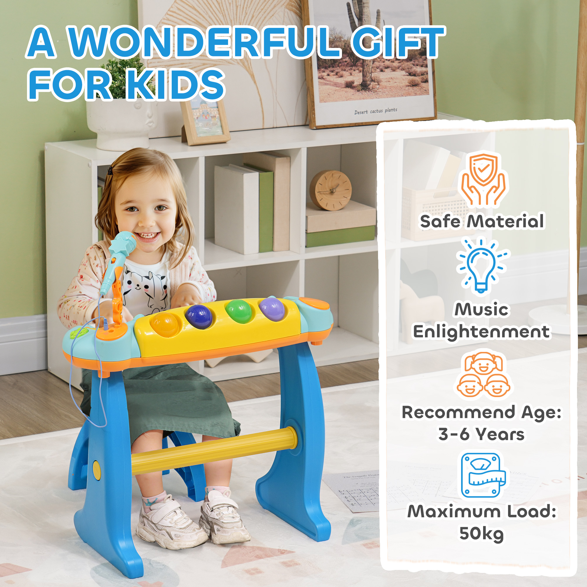 Spark your child's musical genius with the AIYAPLAY piano for kids! Featuring 37 keys, 22 built-in songs and eight diverse rhythms, this baby piano turns every play session into a concert. Includes a microphone with sound amplification for singing along and interactive LED lights that groove to the rhythm. A complete set with a keyboard, standand stool for a wonderful piano experience for toddlers.