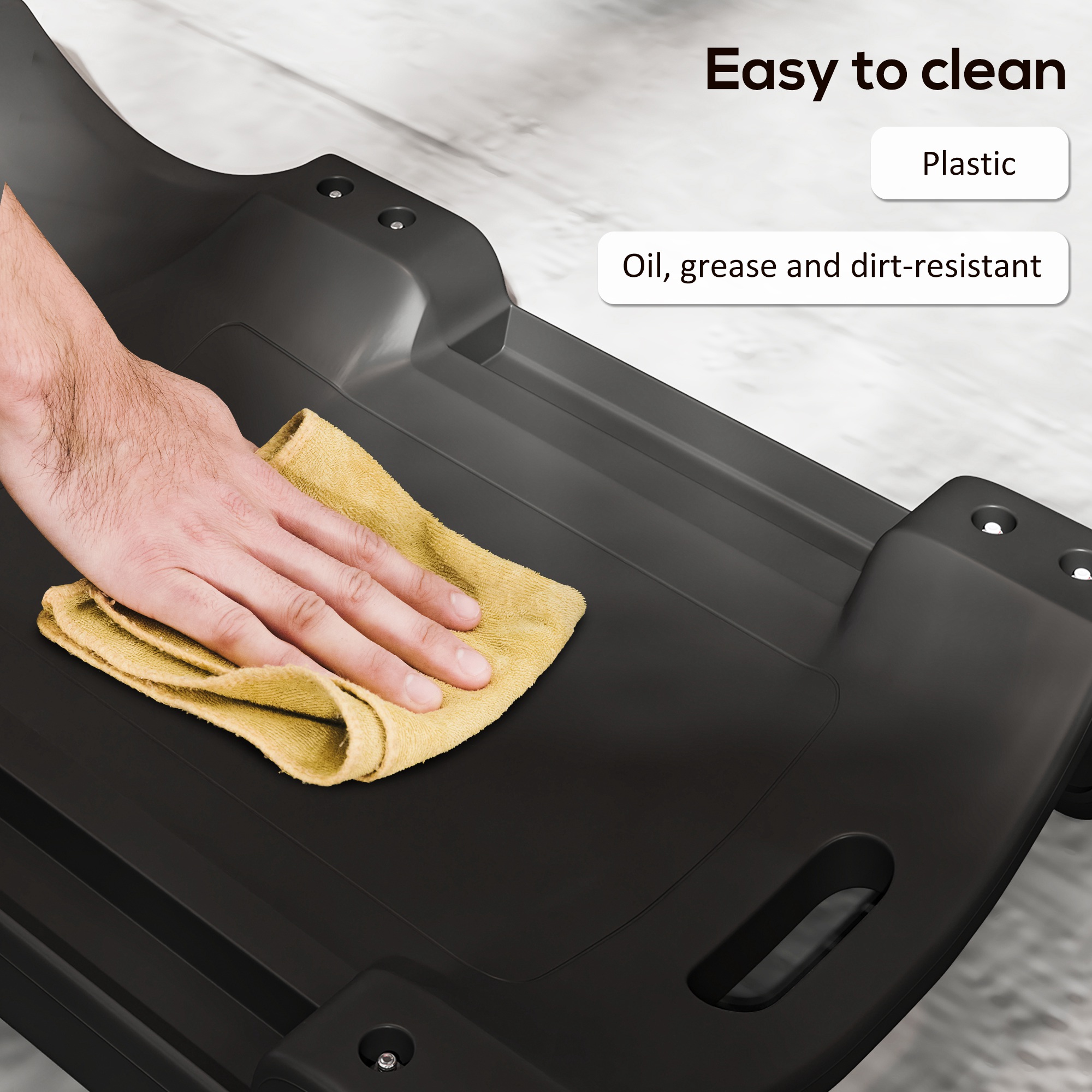 - Oil, dirt and grease resistant plastic for everyday durability