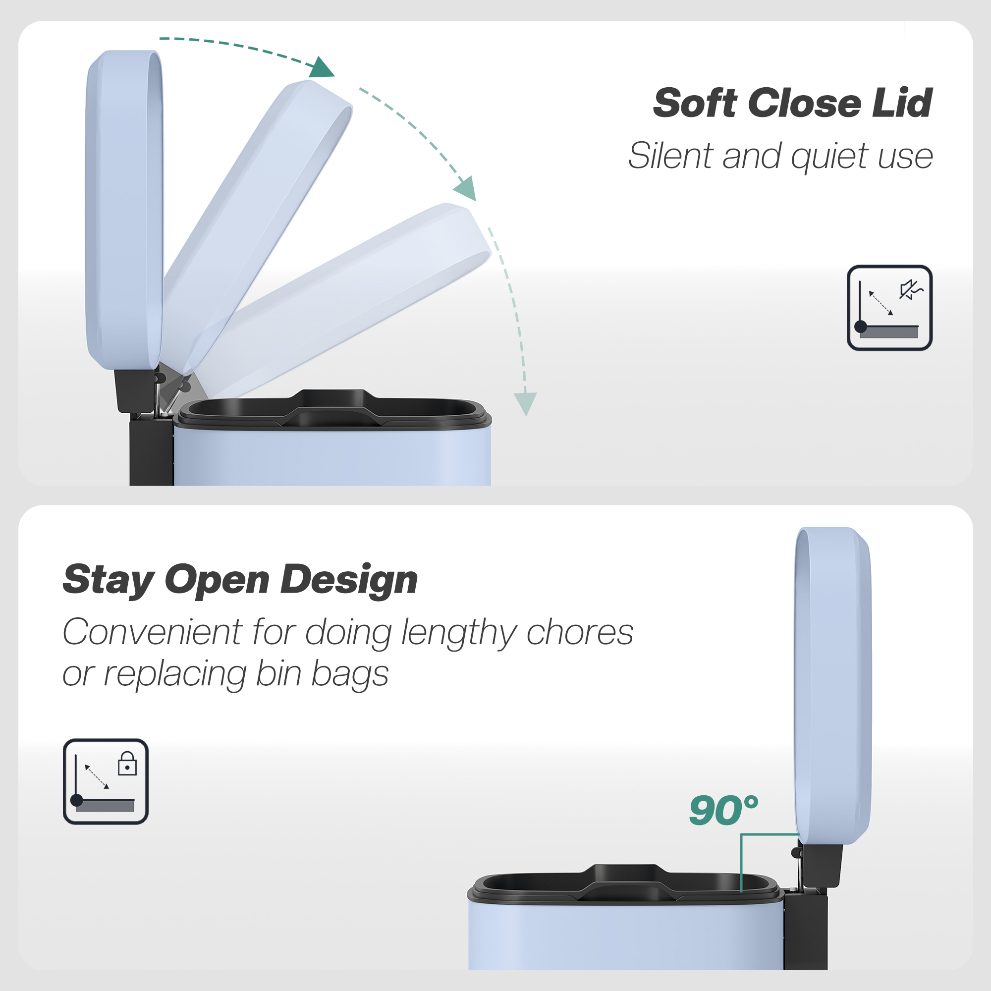 HOMCOM 12L Modern Boxy Metal Home Kitchen Bin - Light Blue