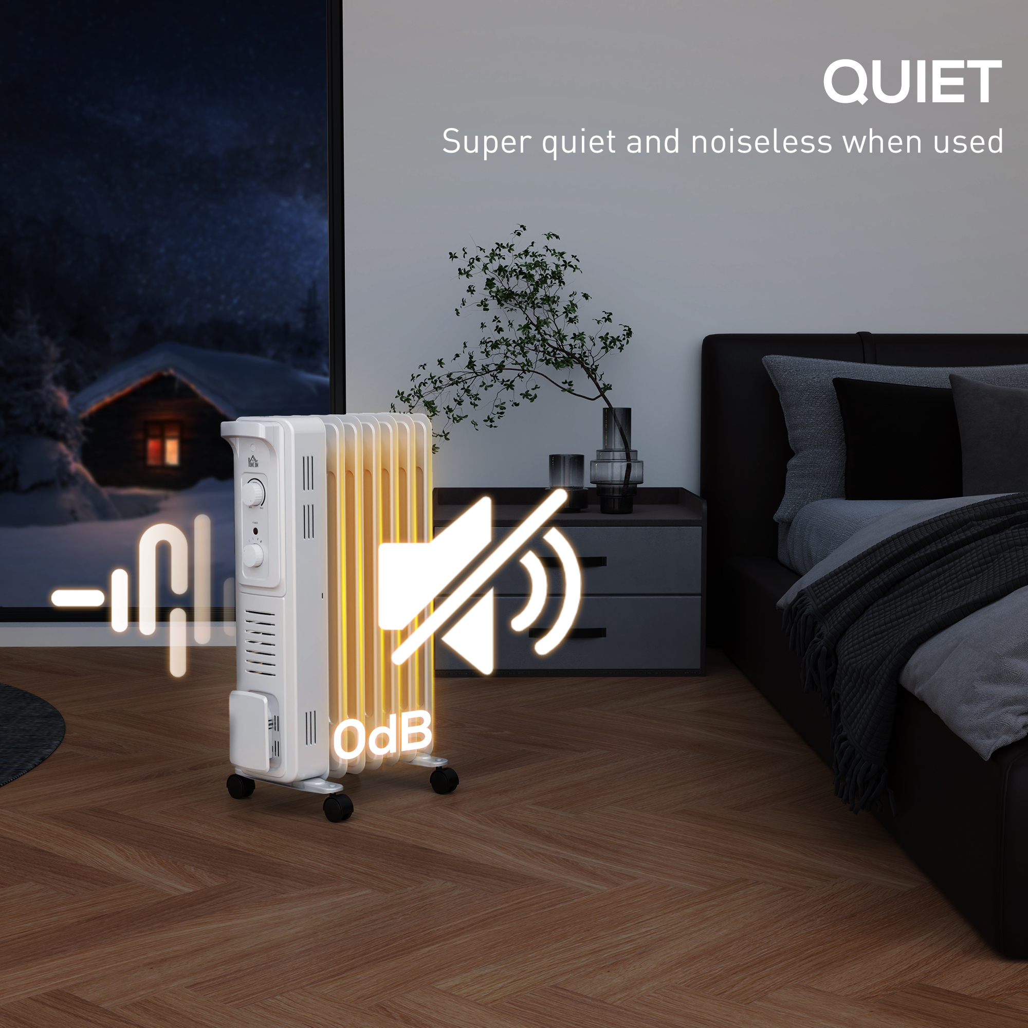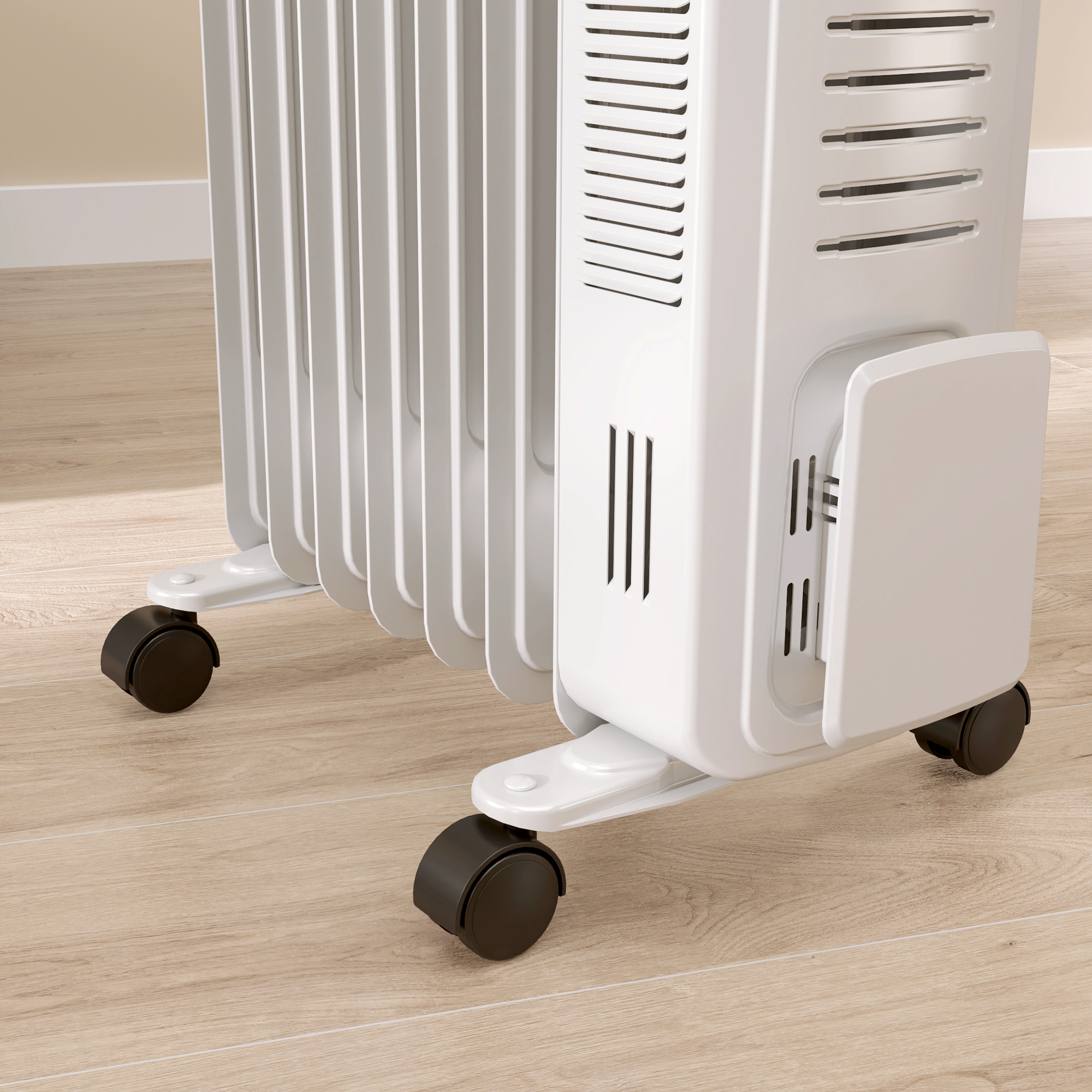 For fast, quiet and powerful heating, look to this HOMCOM oil-filled radiator. The 7-fin design provides plenty of heat, for 8-12㎡ sized spaces - keeping you warm and cosy. Thanks to the oil filling, this radiator heats up in 5-10 minutes - you won't have to wait long to heat up. Flick between 600W/900W/1500W, and set the temperature between 7-35℃: this portable radiator heater is a piece which customises to exactly how you want.