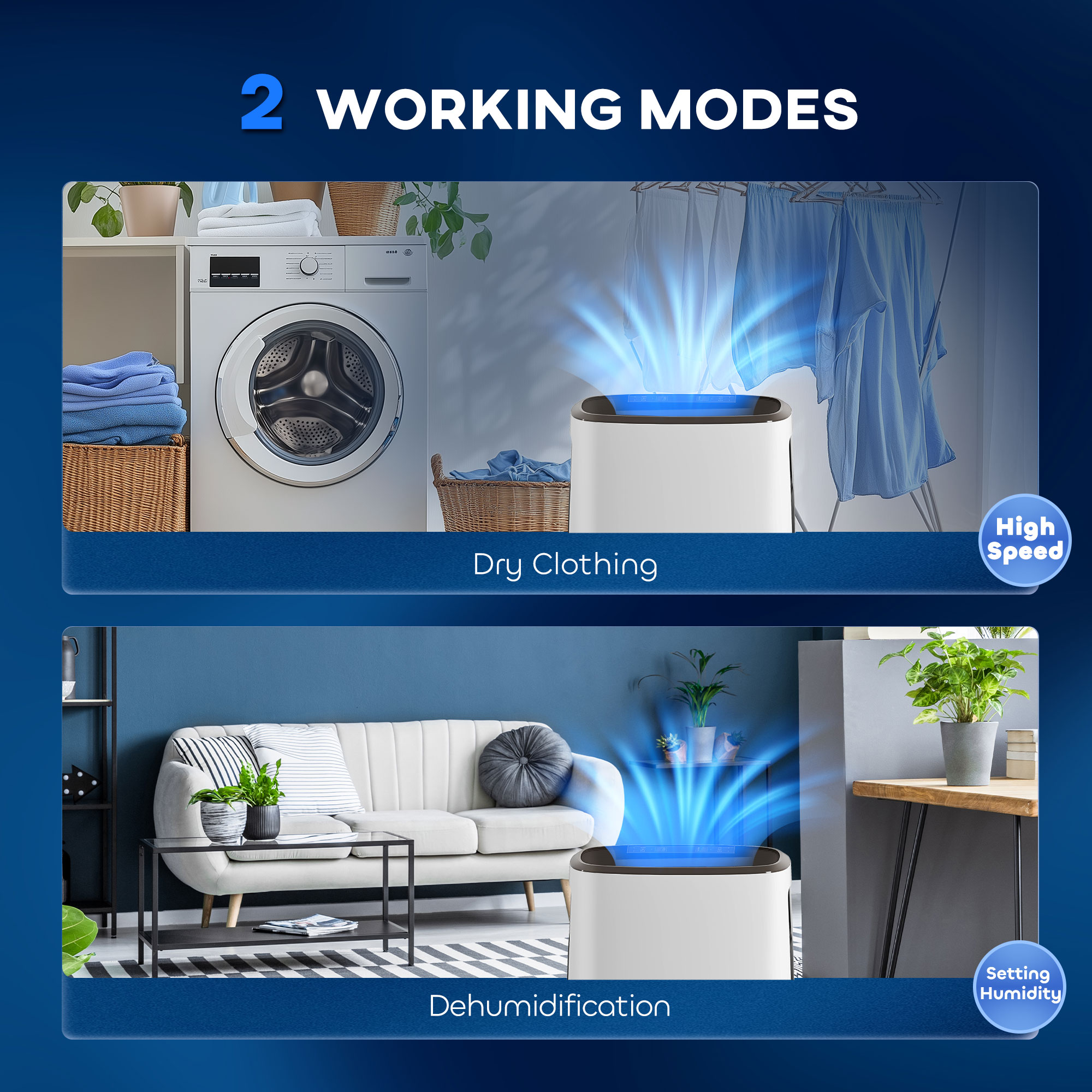 This HOMCOM air dehumidifier is a must-have assistant for helping to maintain a dry, cosy surrounding, as well as helping to combat home damp. With a 3.7L removable tank, this machine is suitable for areas up to 20m² - pulls an impressive 16L of moisture per day. Different speeds and modes, including a continuous drainage option, this electric dehumidifier for home damp keeps running smoothly, and will automatically shut off when full so the liquid doesn't overfill in the tank.
