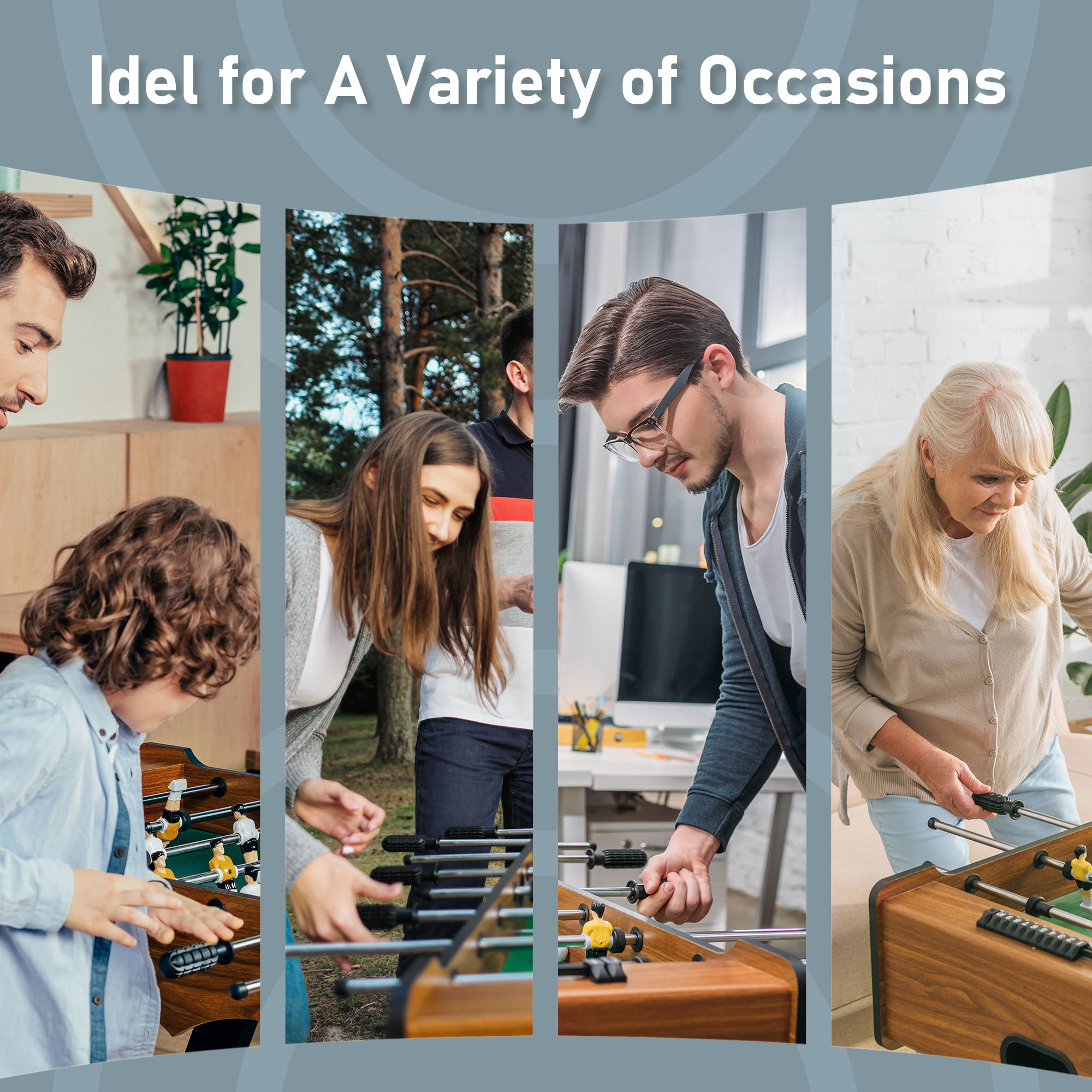 This HOMCOM table football game is the optimal option for a tabletop foosball table set that’s suitable for the whole family, ideal for all kinds of groups,being a fantastic activity for interaction between parents and children, friends, or colleagues. It adapts perfectly to the home, bars, parties, school, or even the office, thanks to its compact and lightweight portable design. It’s these types of games that help promote the ability to react quickly, improve hand-eye coordination, enhance agility and psychomotor skills, in addition to being beneficial for the development of the right brain that is rarely used in our daily activities. Try this tabletop foosball table from HOMCOM and have a great time with your friends and family anytime you play.