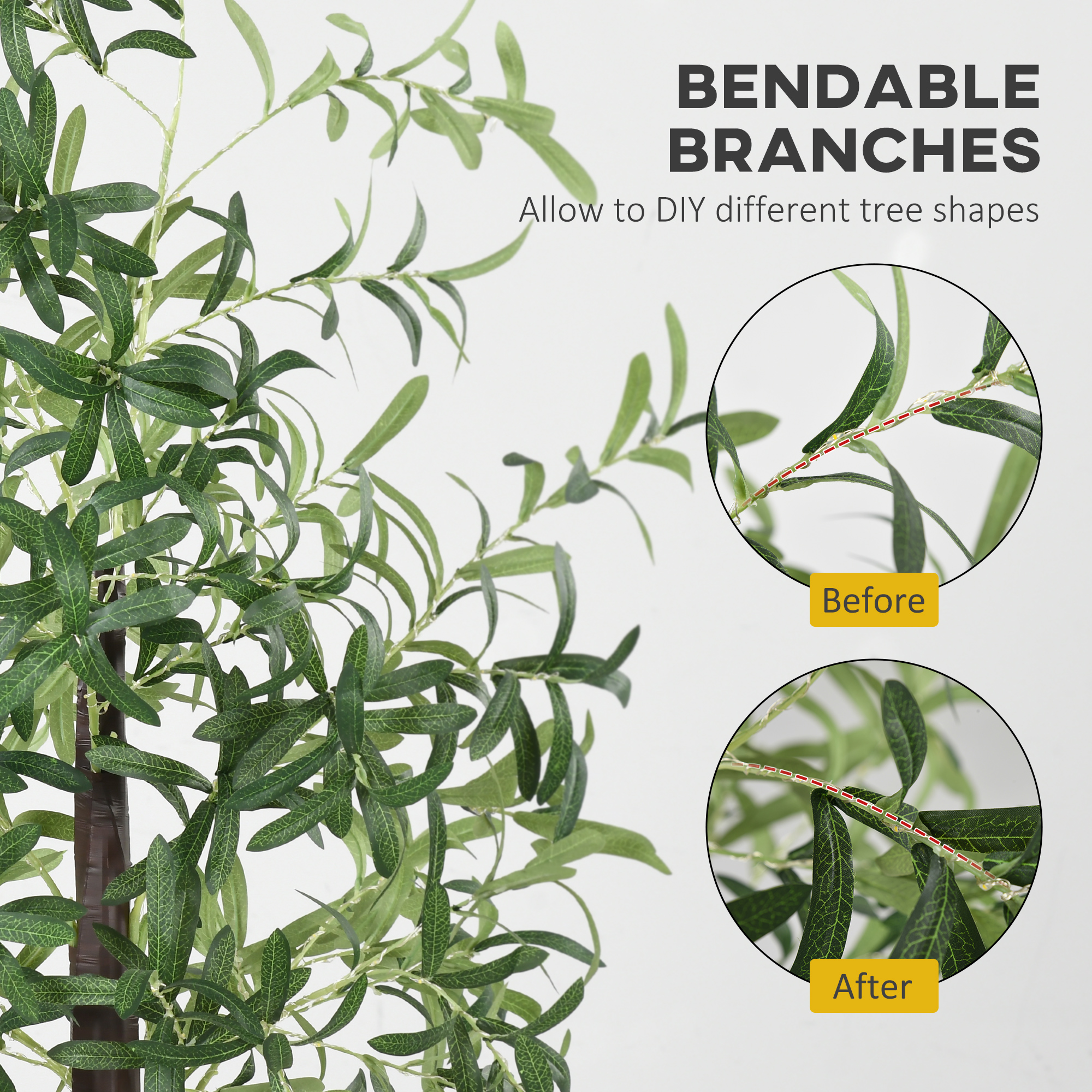 Beauty and light, all through the night. This HOMCOM light-up faux tree is a unique way to dress your outdoors. Formed into an olive tree design, it's fitted with 300 LED lights - this provides plenty of illumination. The flexible branches allow you to bend to a position you require. The plastic body means it's a reliable piece, with a water-resistant coating making it safe for outdoor use. Light up the night in glorious colour.