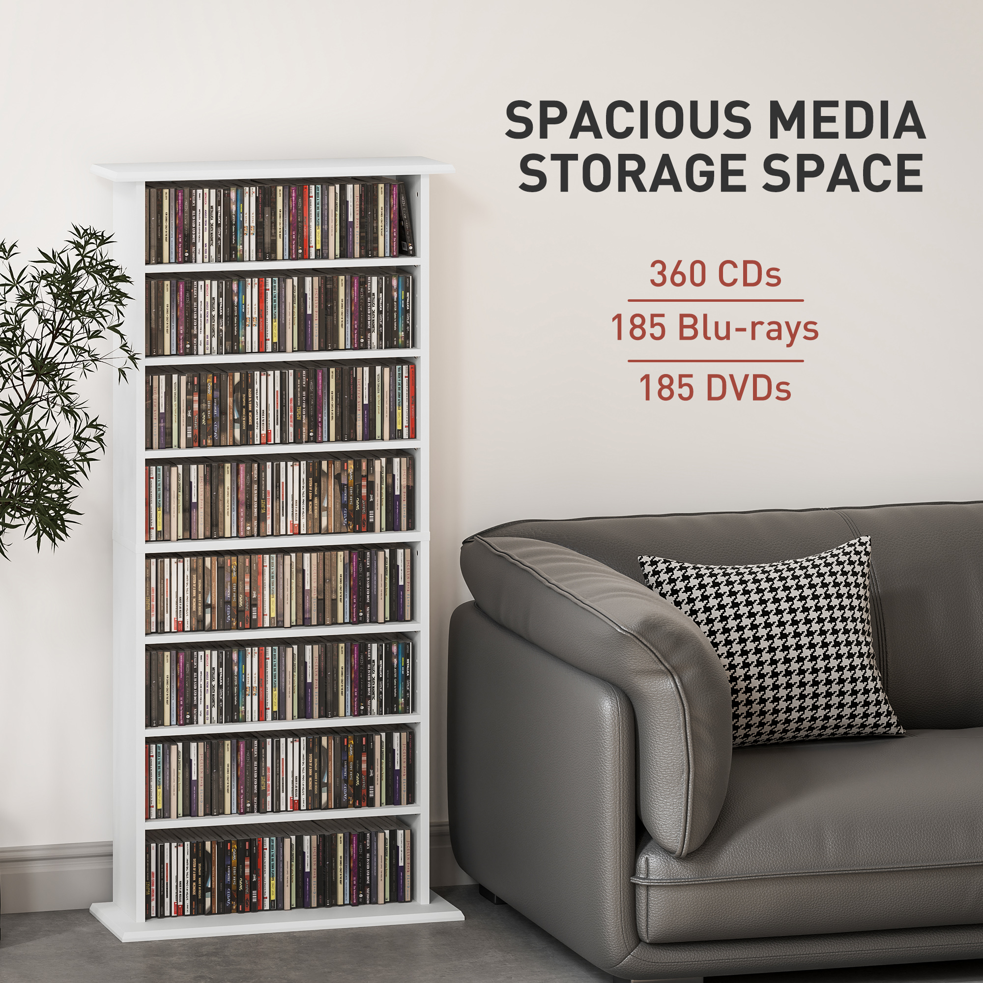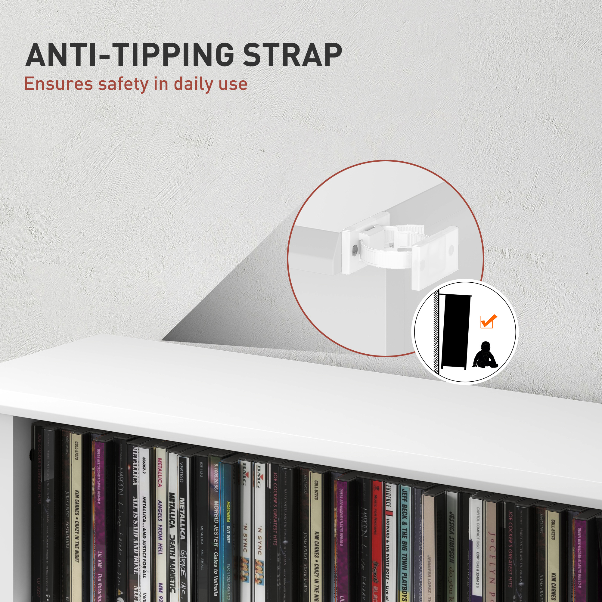 This HOMCOM DVD rack showcases 8 shelves, with 6 adjustable shelves: room for up to 360 CDs, 185 DVDs or 185 Blu-rays. Made from particle board, the CD shelf's structure is reliable and is made to be used every day. Coming with anti-tipping straps to fix to a wall, so our HOMCOM DVD shelf doesn't fall forwards and cause damage.