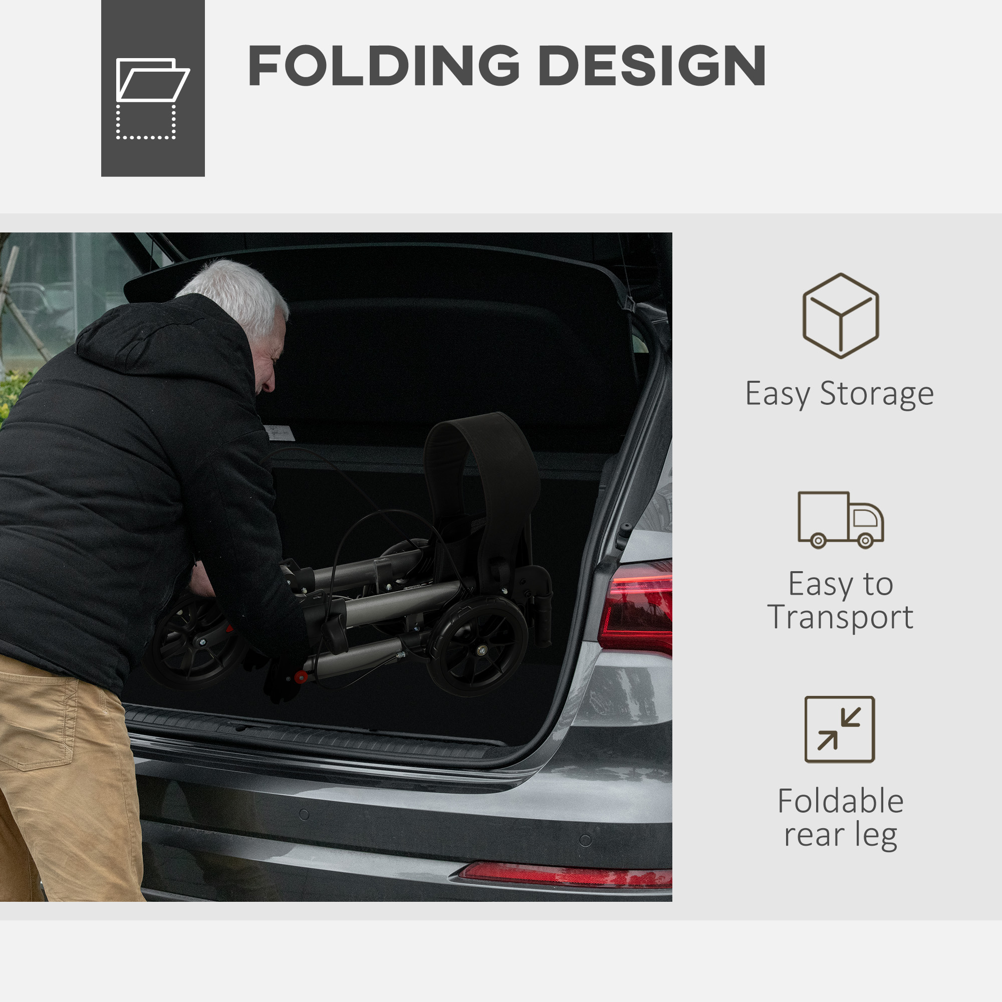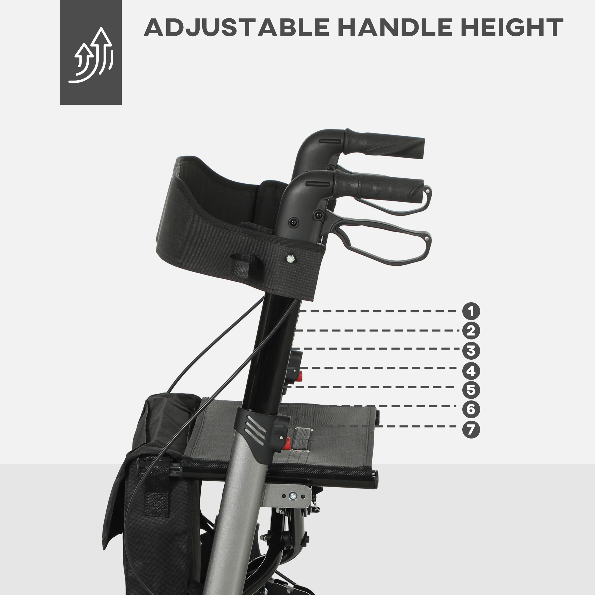This HOMCOM lightweight rollator walker rolls with you, making journeys stress free. A powder coated aluminium frame for a strong, yet lightweight core, it is fitted with a seat so you can take a break whenever you want. It can be folded into a smaller size for convenient storage and transport. A storage bag to take small essentials with you on the journey. Four wheels for smooth movement, this mobility walker is complete with a dual brake for safety.