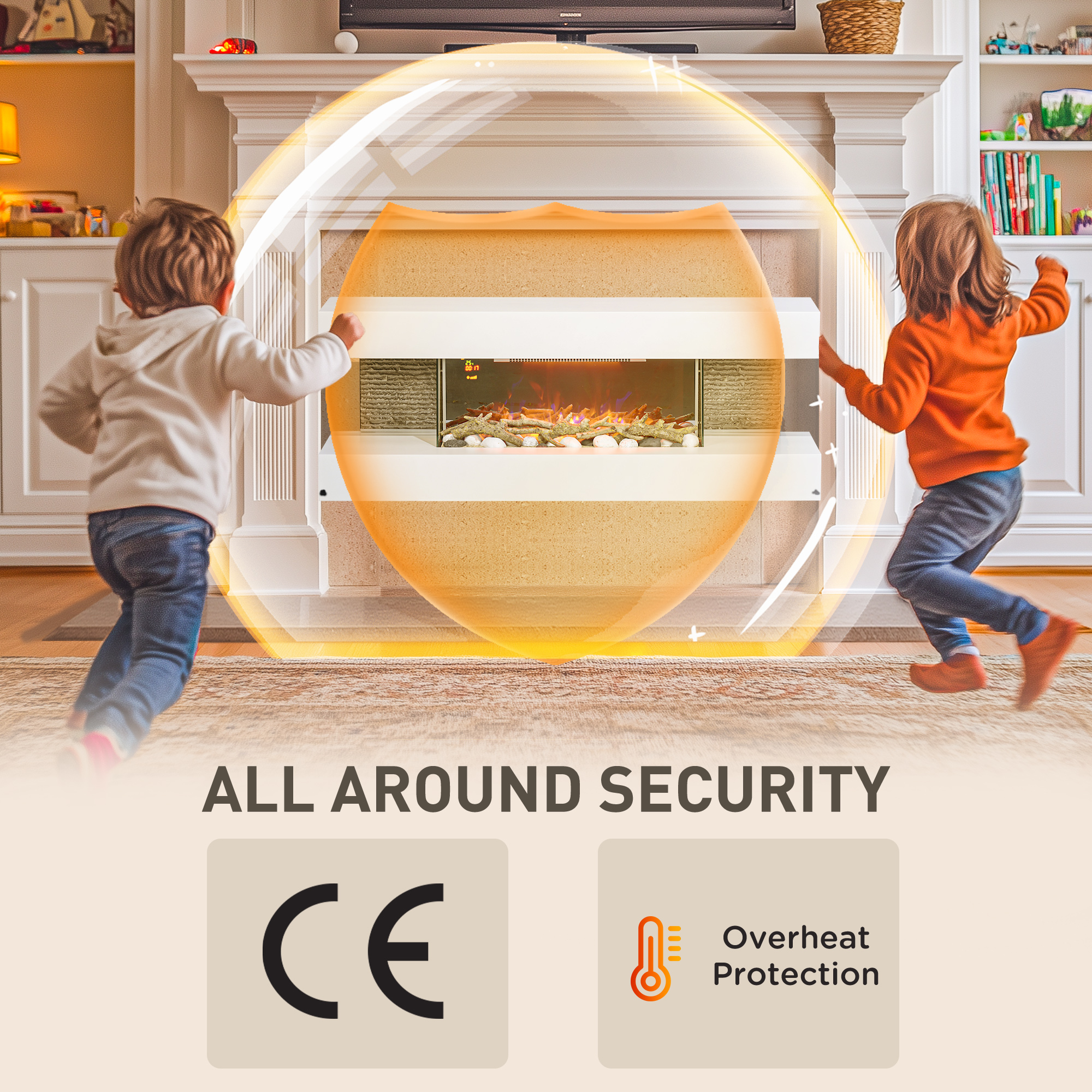 Transform your living space with the HOMCOM LED fireplace, featuring a chic white mantel and realistic 3D flame effect. Enjoy the ambience with or without heat, thanks to adjustable flame brightness and colour settings. This versatile unit can be wall-mounted, or serve as a freestanding electric fireplace.
