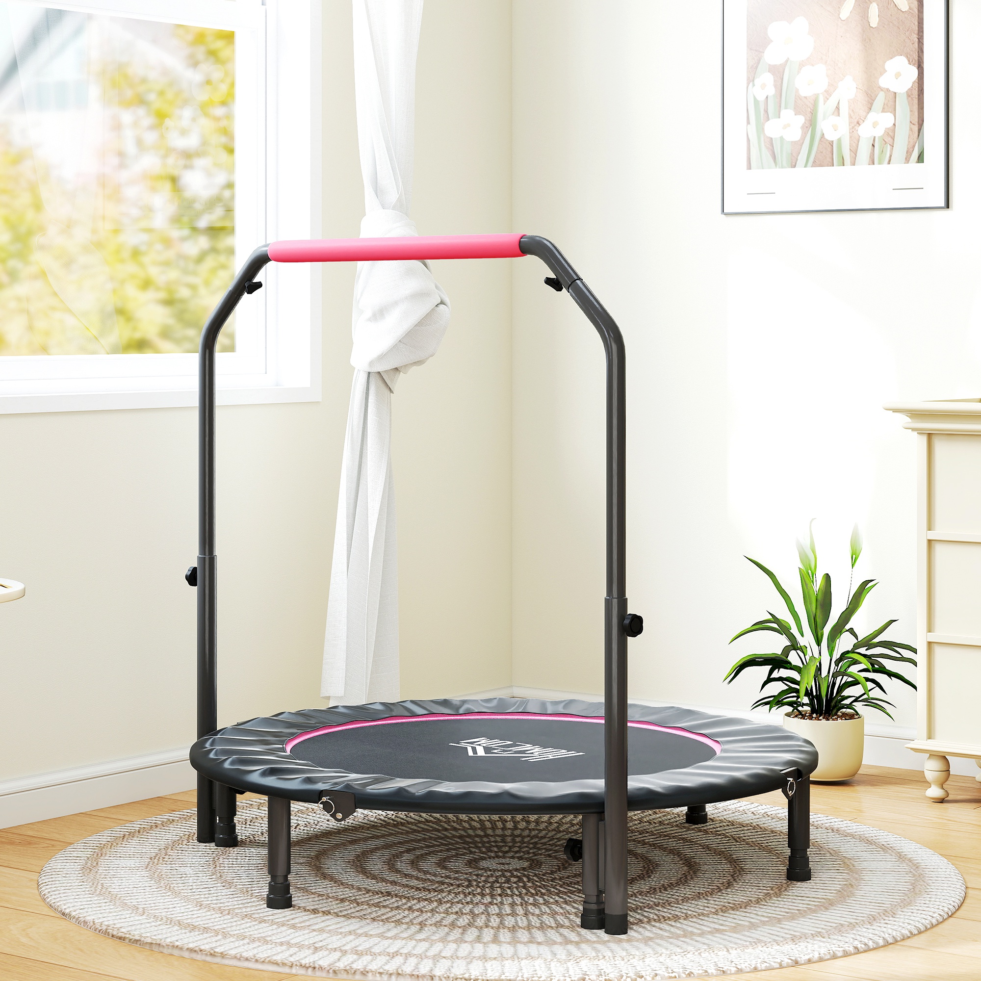 HOMCOM 48" Foldable Mini Fitness Trampoline, with Adjustable Foam Handle, Pink