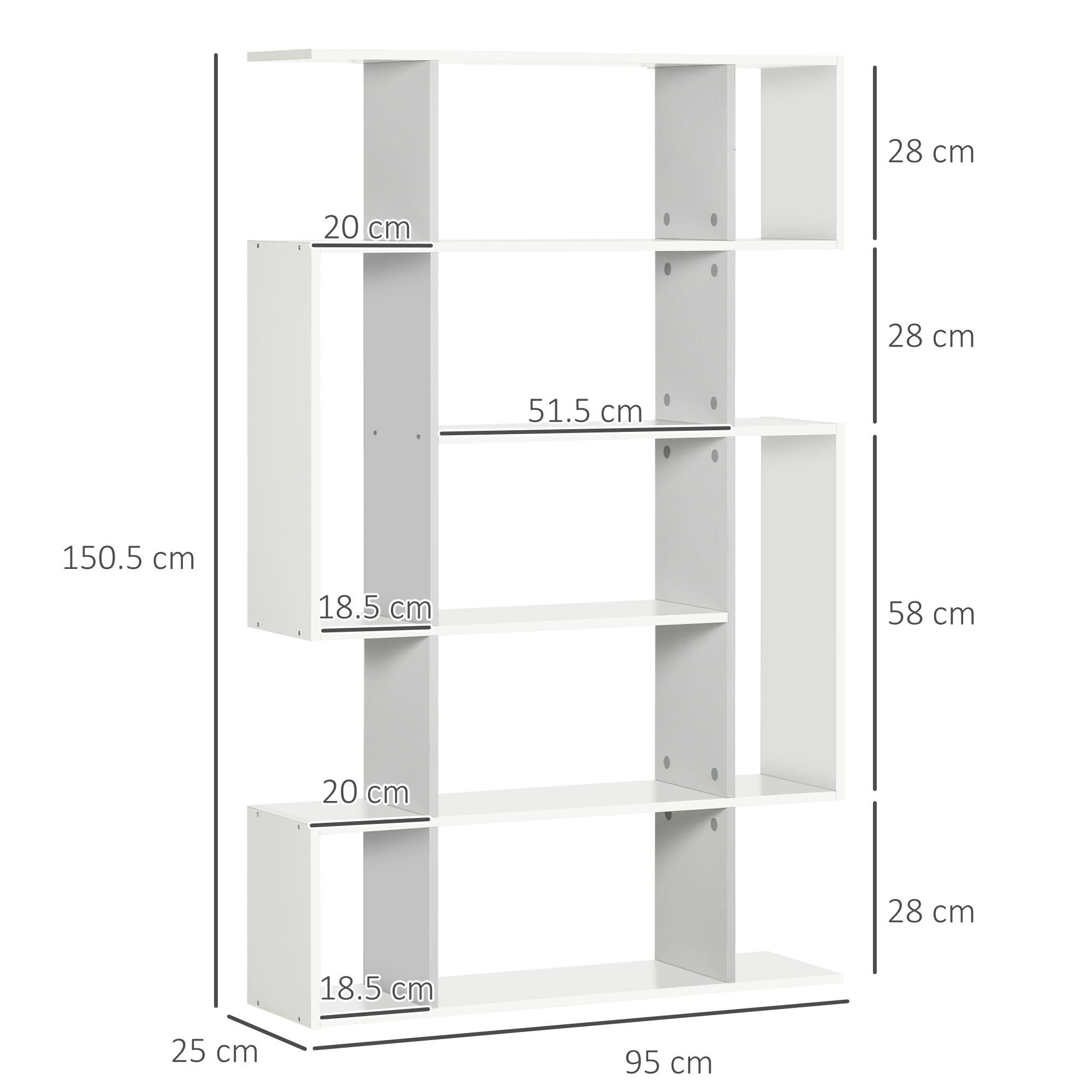 - Left Shelves Size: 20W x 25D x 28H cm/18.5W x 25D x 58H cm/20W x 25D x 28H cm/18.5W x 25D x 28H cm(from top to bottom)