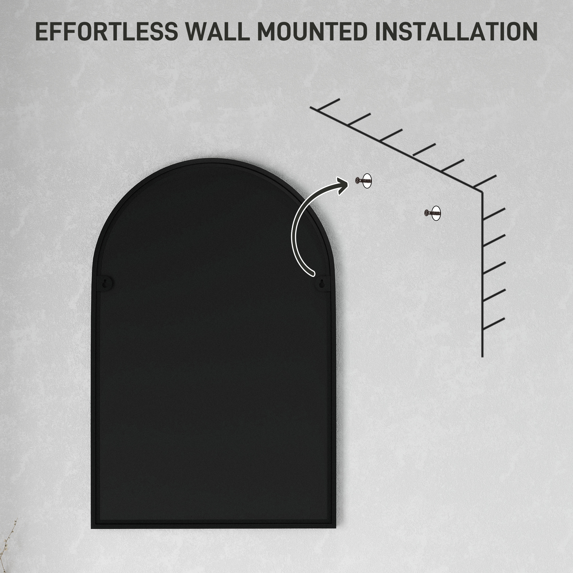Elegant reflection, for your bathroom and beyond with this HOMCOM 60 x 90cm arched mirror. See yourself clearly with the HD glass, which is kept safe with the shatter-resistant film. It's protected with the powder coated metal frame, complete with included mounting accessories to fix easily to the wall of your choice.