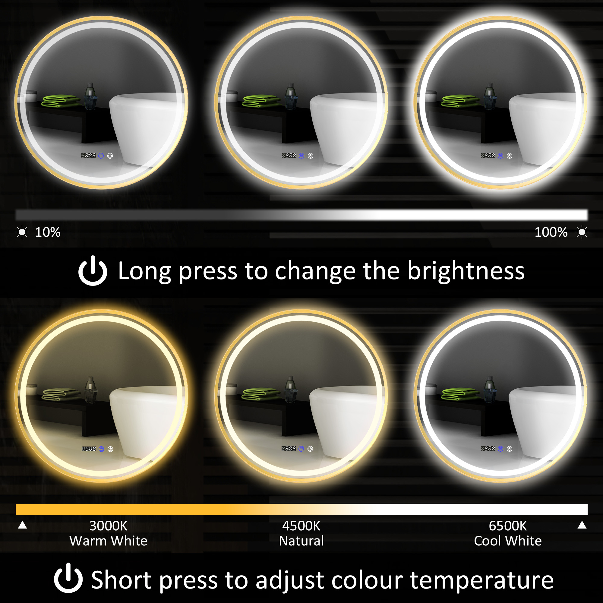 No matter how steam, it's easy to get ready with this HOMCOM bathroom wall mirror. It's anti-fog design allows you to see yourself clearly, straight out of the shower - this saves time when getting ready morning and evening. The outer LED light is adjustable between 10-100%, with a warm white/natural/cool white colour: set to what suits you. Mounting accessories included to easily fix to the wall. IP44 rated - suitable for wet bathrooms.