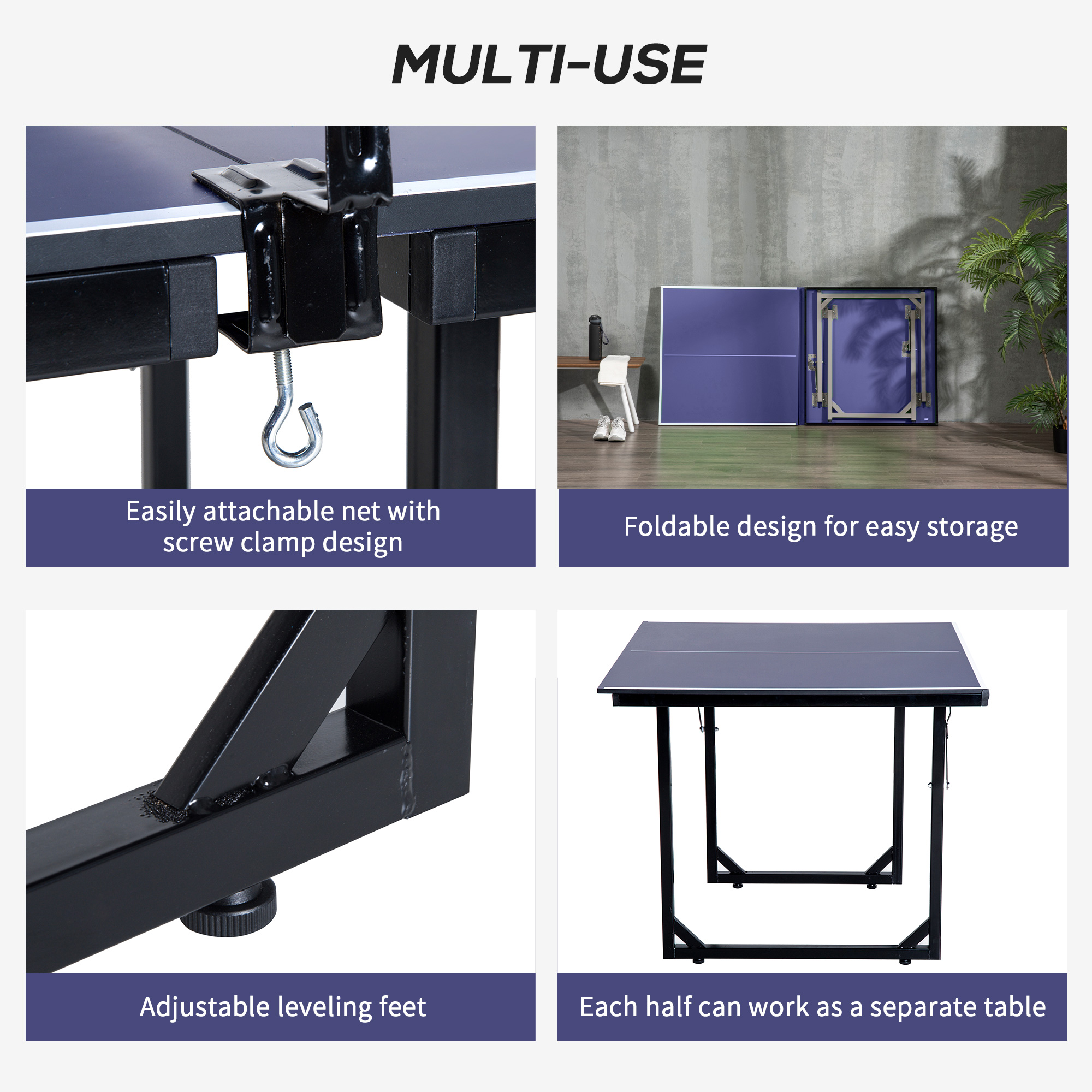 HOMCOM 6ft 182cm Mini Table Tennis Table Folding Ping Pong Table with Net Multi-Use Table for Indoor Outdoor Game, Blue