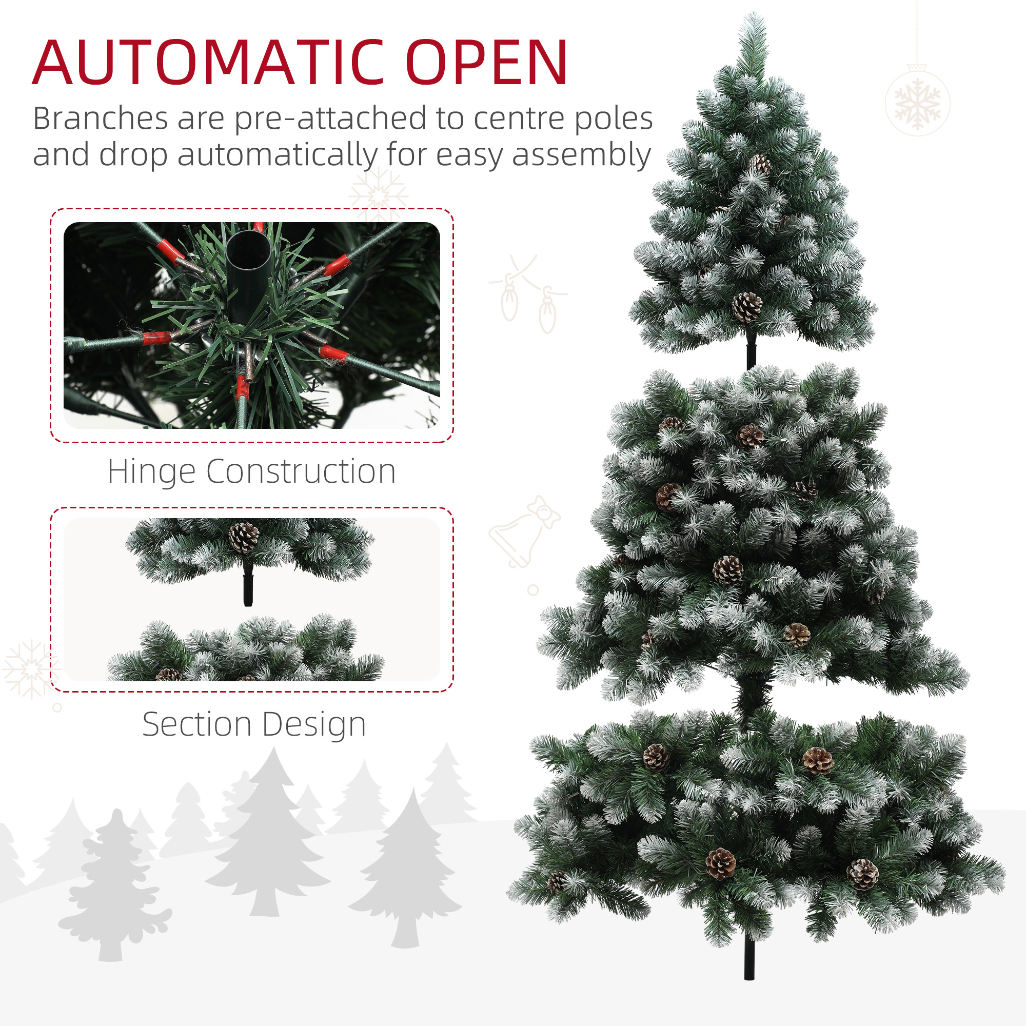 Bring the feel of nature into your christmas festivities, with this HOMCOM 6ft artificial christmas tree. It comes as a winter pine tree design, with snowy white ends and covered with pine cones—a beautiful design great for the season. The bare design allows you to dress up with whatever lights and decorations you want; personalise it how you want. Made from flame-retardant plastic, this is a safe and tough xmas tree, complete with a metal base to stand steady.