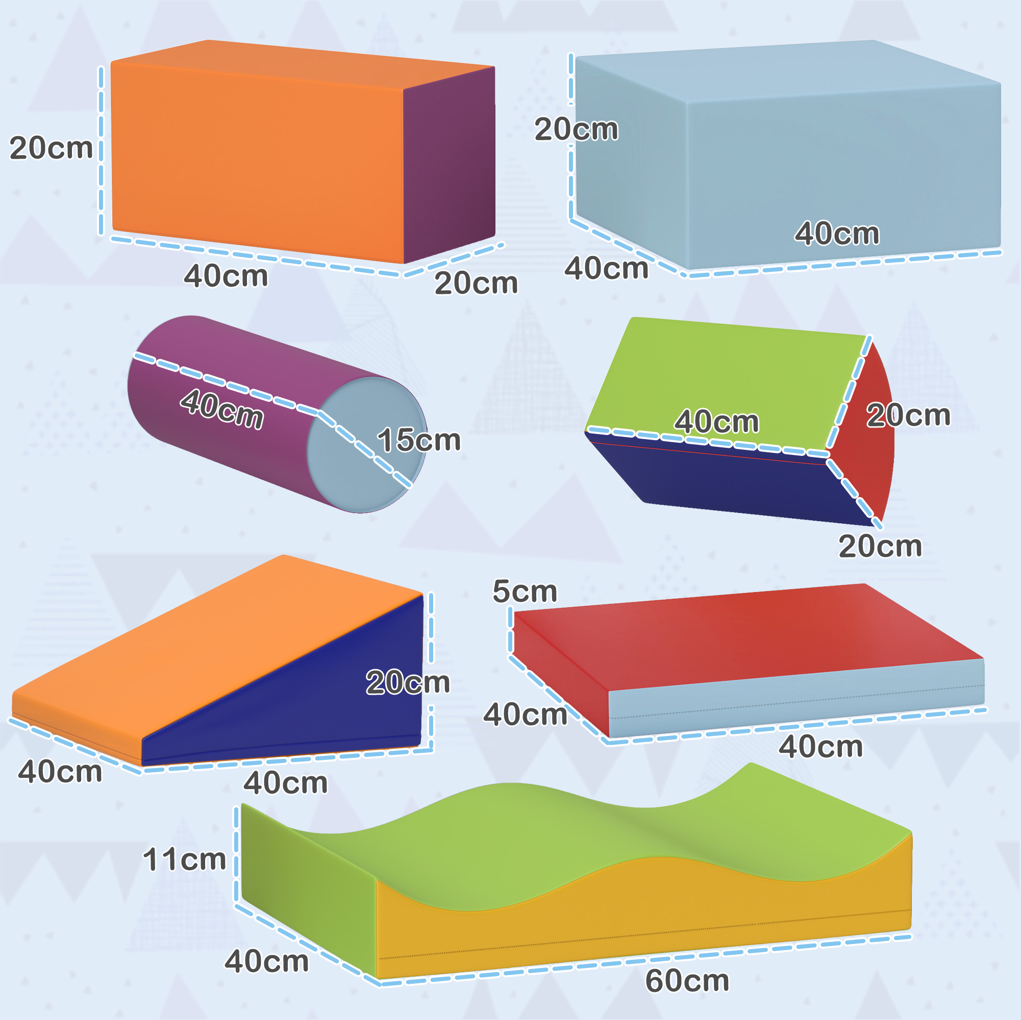 Bring colour and excitement into playtimes the simple way: go for this baby soft play from HOMCOM. Comes with seven different pieces in bright shades - it's easy for them to build and move each piece around to any set-up they want. Helps develop puzzle solving, teamwork and thinking skills. Each piece is made from secure foam for safety. Foam creation also means they can carry each piece easily. Hours of entertainment were brought.