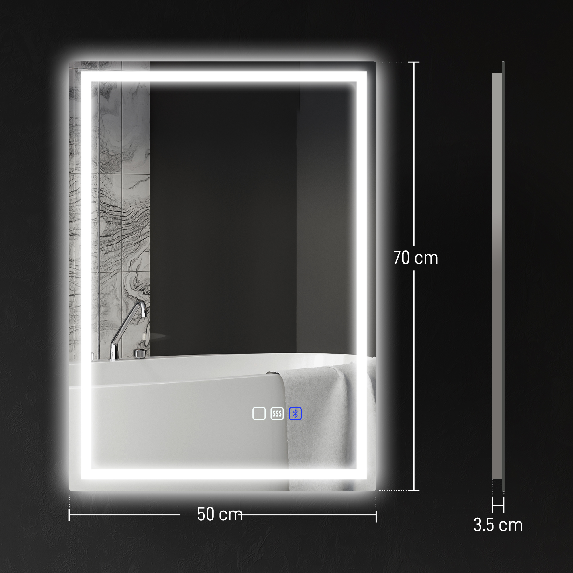 The great illumination to get ready, with your favourite songs providing the soundtracks. This HOMCOM 70 x 50 cm bathroom mirror is fitted with Bluetooth - connect your phone to listen to music as you get ready. With 246 LED beads around the edge, this mirror provides plenty of illumination - customise the colour and brightness as you require. Complete with a glowing touch control, making it easy to use - even in the dark.