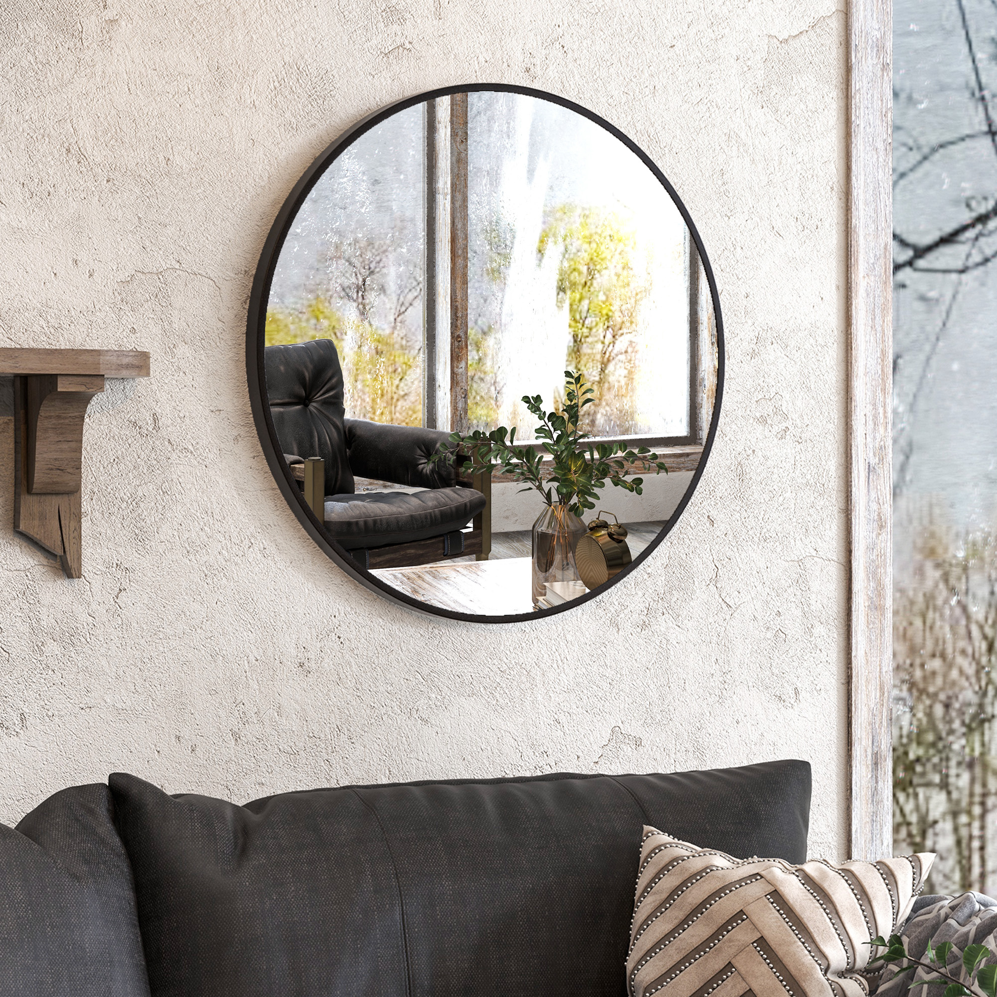 HOMCOM 70cm Aluminium Frame Round Bathroom Mirror - Black
