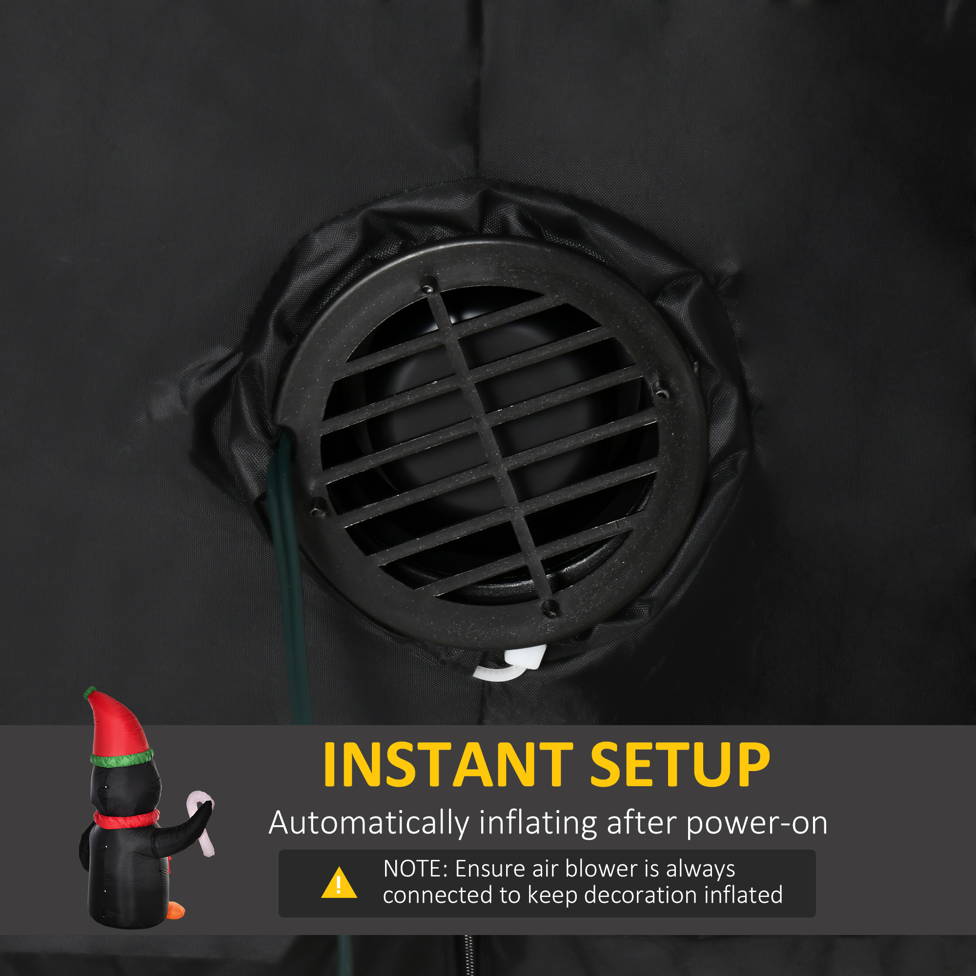 - 1: Ensure air blower is always connected to keep decoration inflated
