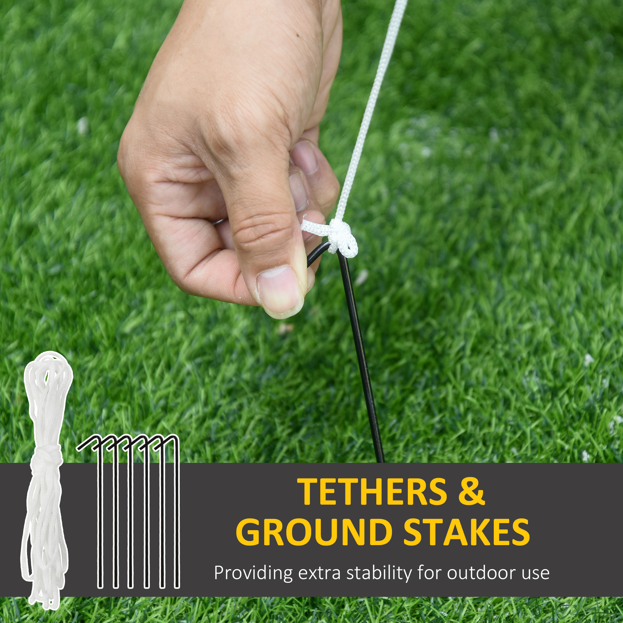 - 6 ground stakes, 3 drawstrings, 1 internal fan ensure the stability