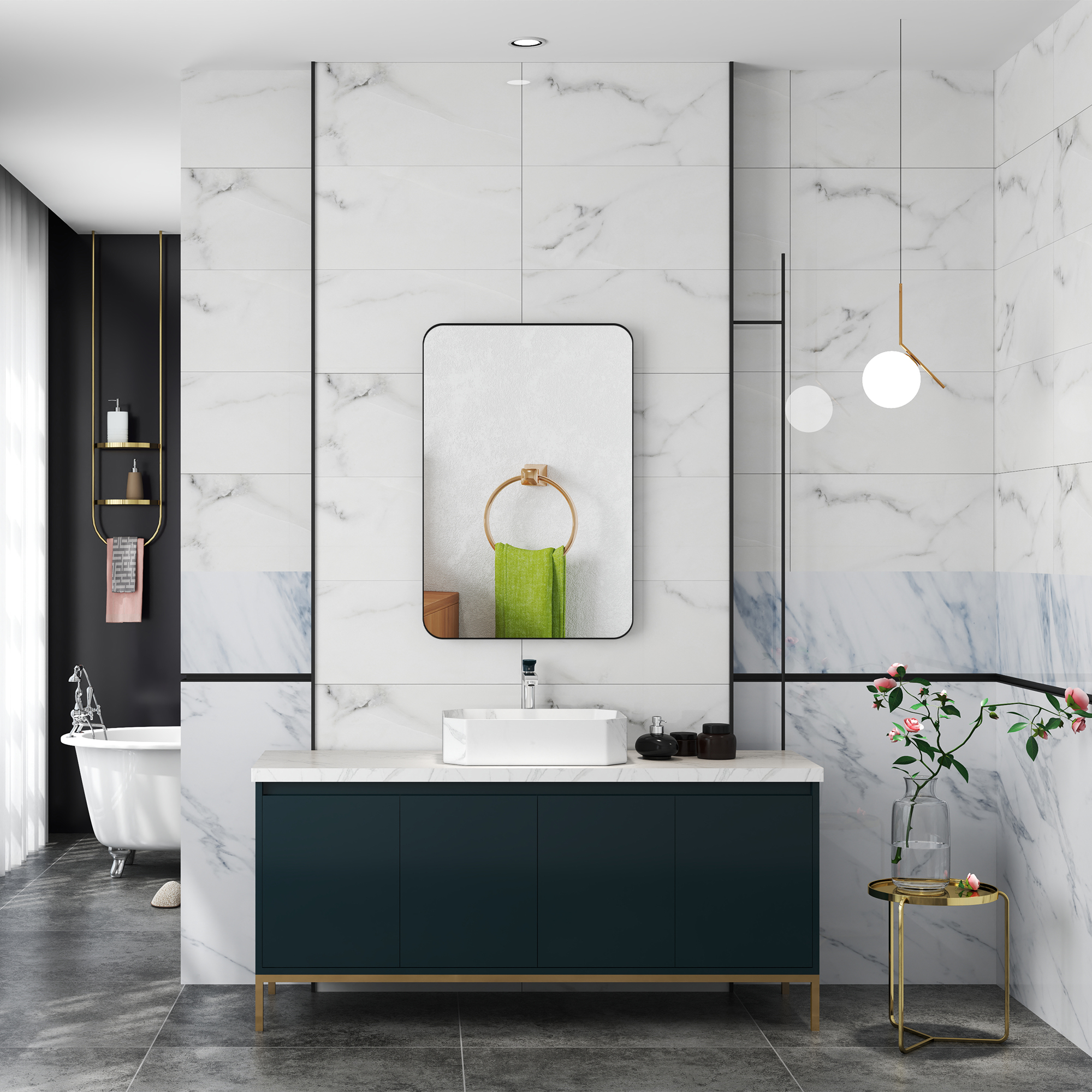The HOMCOM bathroom mirror is an essential for every home. Hang this 90 x 60cm mirror either vertically or horizontally - hang it your way. The powder coated metal frame is strong, in a curved corner shape for a soft, welcoming look. HD glass means a clear reflection, finished with shatter-resistant film on the back for safety.