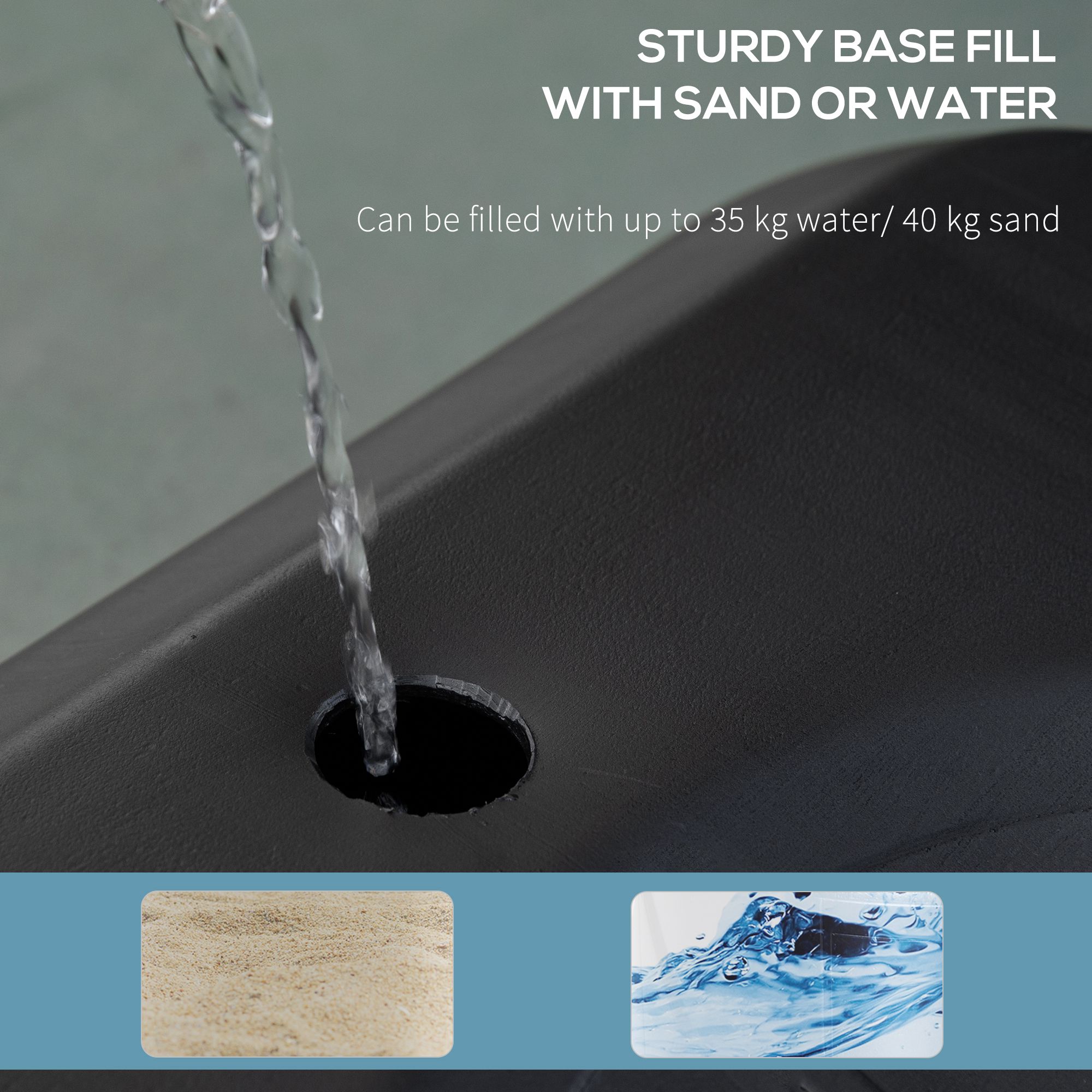 • Bottom base can be filled with 35kg of water, 40kg of sand or 45kg of water and sand, giving the base added stability