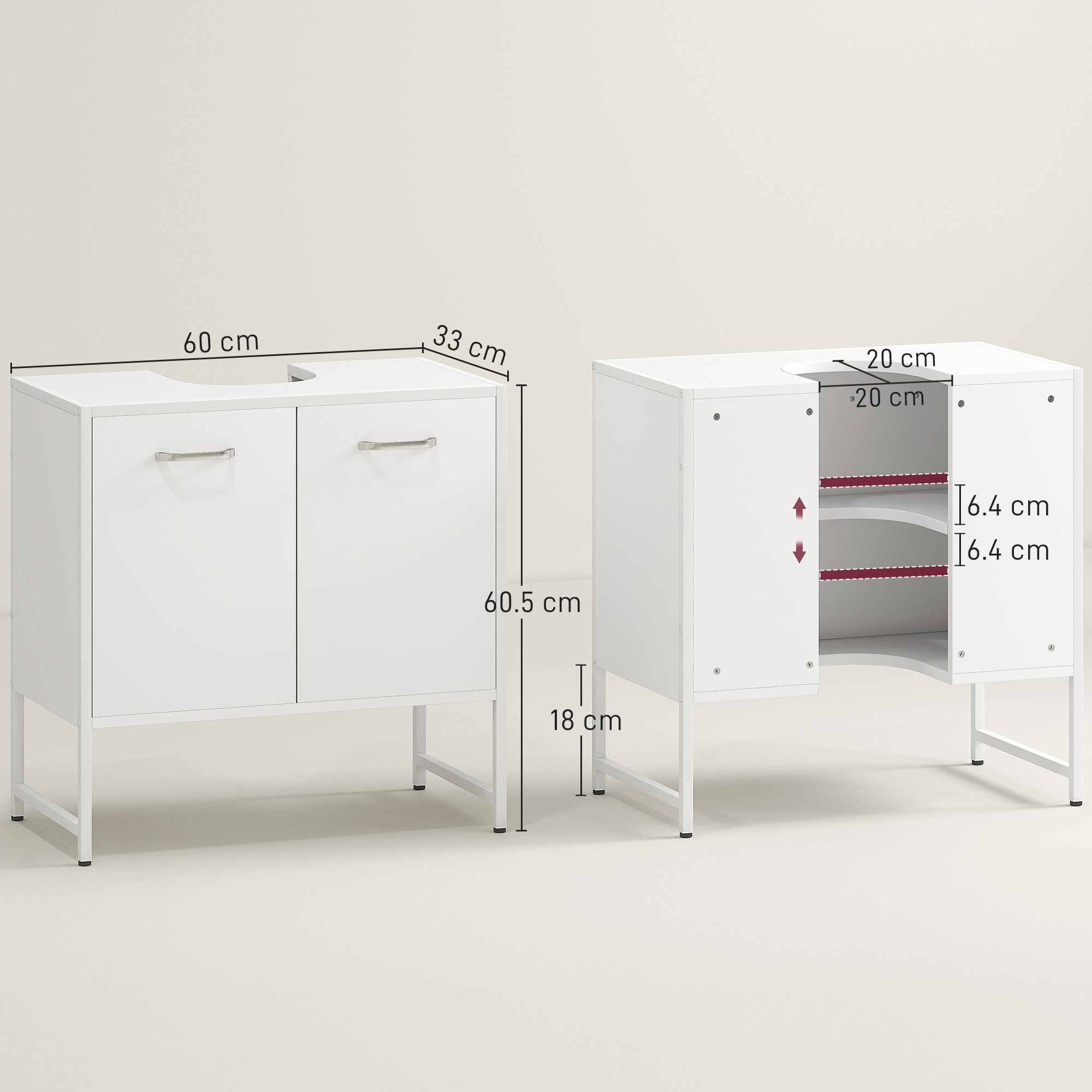 Transform your bathroom with the under sink bathroom cabinet from HOMCOM, cleverly designed to fit around most basins with its 20 x 20 cm U-shaped slots. Enjoy the quiet of soft-close hinges that prevent door slamming and optimise your space with adjustable three-level shelving behind double doors. The HOMCOM under sink storage cabinet is a great solution for any bathroom.