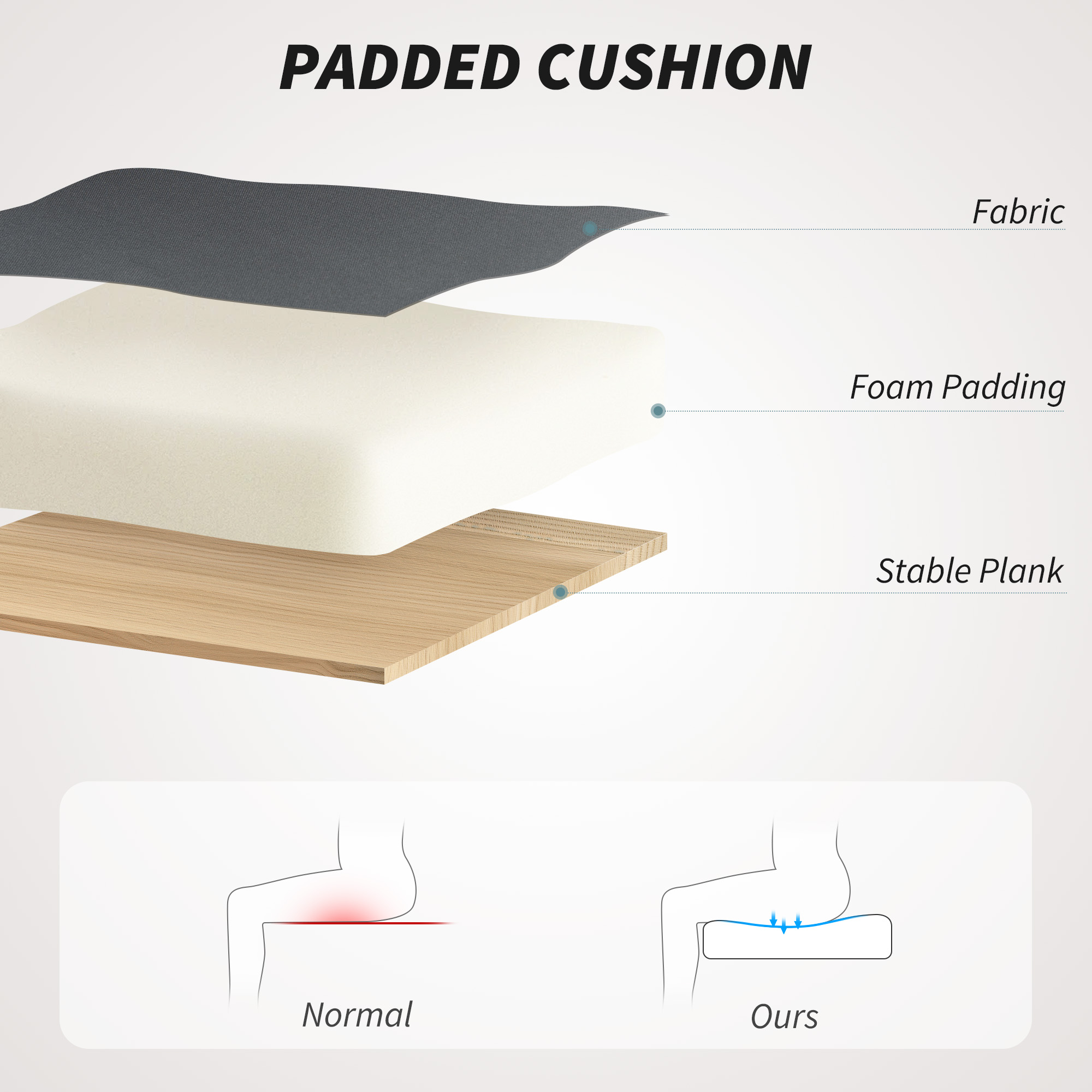 - Curved back with high-density foam supports extended comfort