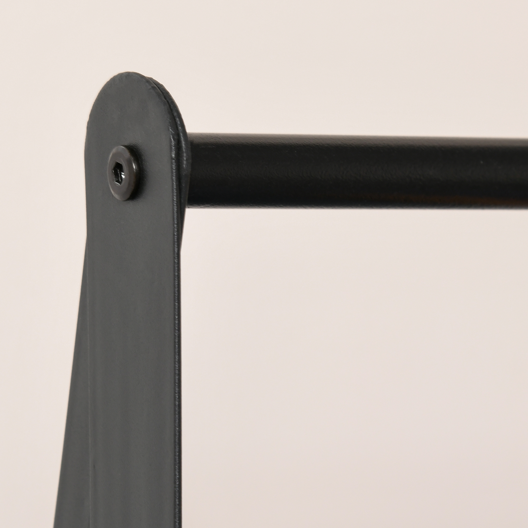 Keep your clothes neatly organised with this stylish and minimalistic clothes rack from HOMCOM. The frame is made from high quality steel to ensure durability and many years of use, and the bottom features two MDF board shelves to store shoes. Whether placed in the bedroom as an open wardrobe or in the hallway as a coat rack, this is the perfect space-saving piece of furniture for each and every home.