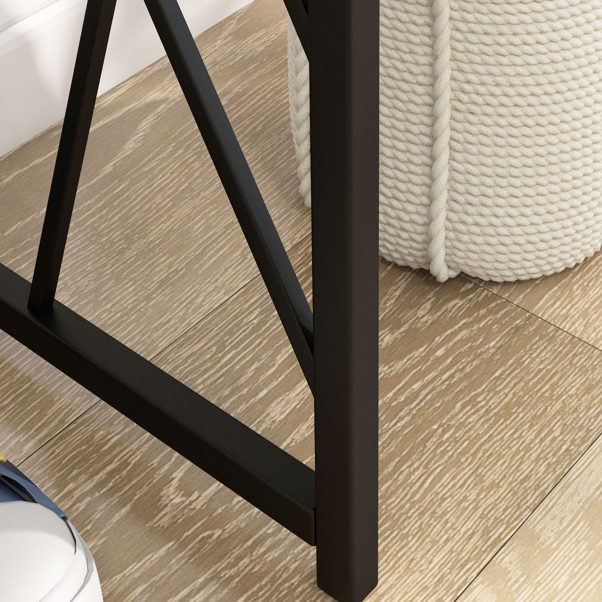 Blending style and storage together, this HOMCOM console table is a distinctive piece you'll love having at home. Our hallway table features a large desktop to display photos, ornaments, keys or earrings and the open space underneath for you to place several container box or shoes. Embrace industrial chic in your living room, bedroom, entryway and beyond with our behind sofa table.
