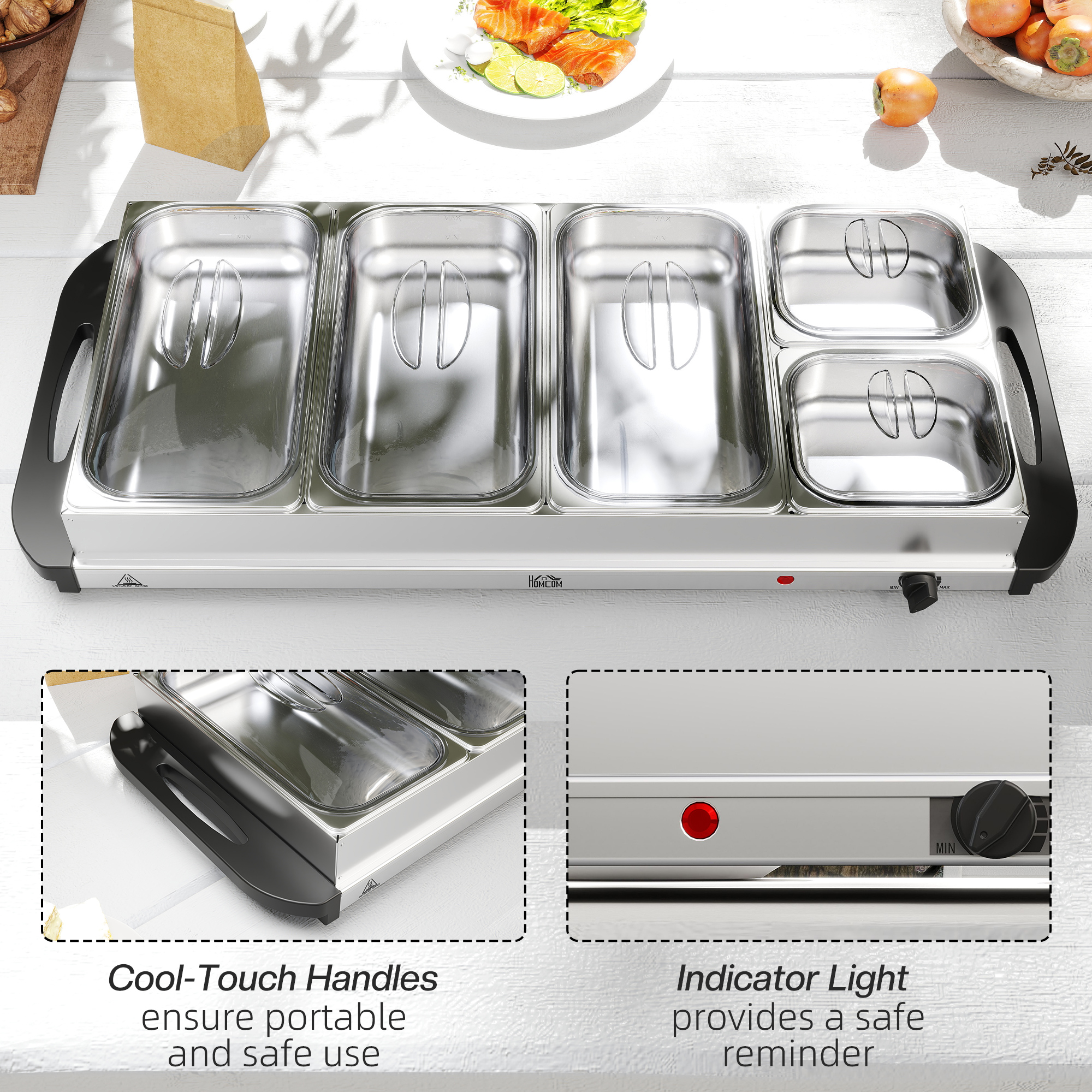 Elevate your hosting game with the HOMCOM food warmer buffet server! With a 9.2L capacity split into handy trays and a see-through lid, you can keep an eye on your feast while it stays piping hot. Featuring a warming tray with adjustable temperatures from 58°C-85°C, this lightweight, portable gem is your new go-to for family dinners and lively BBQs.