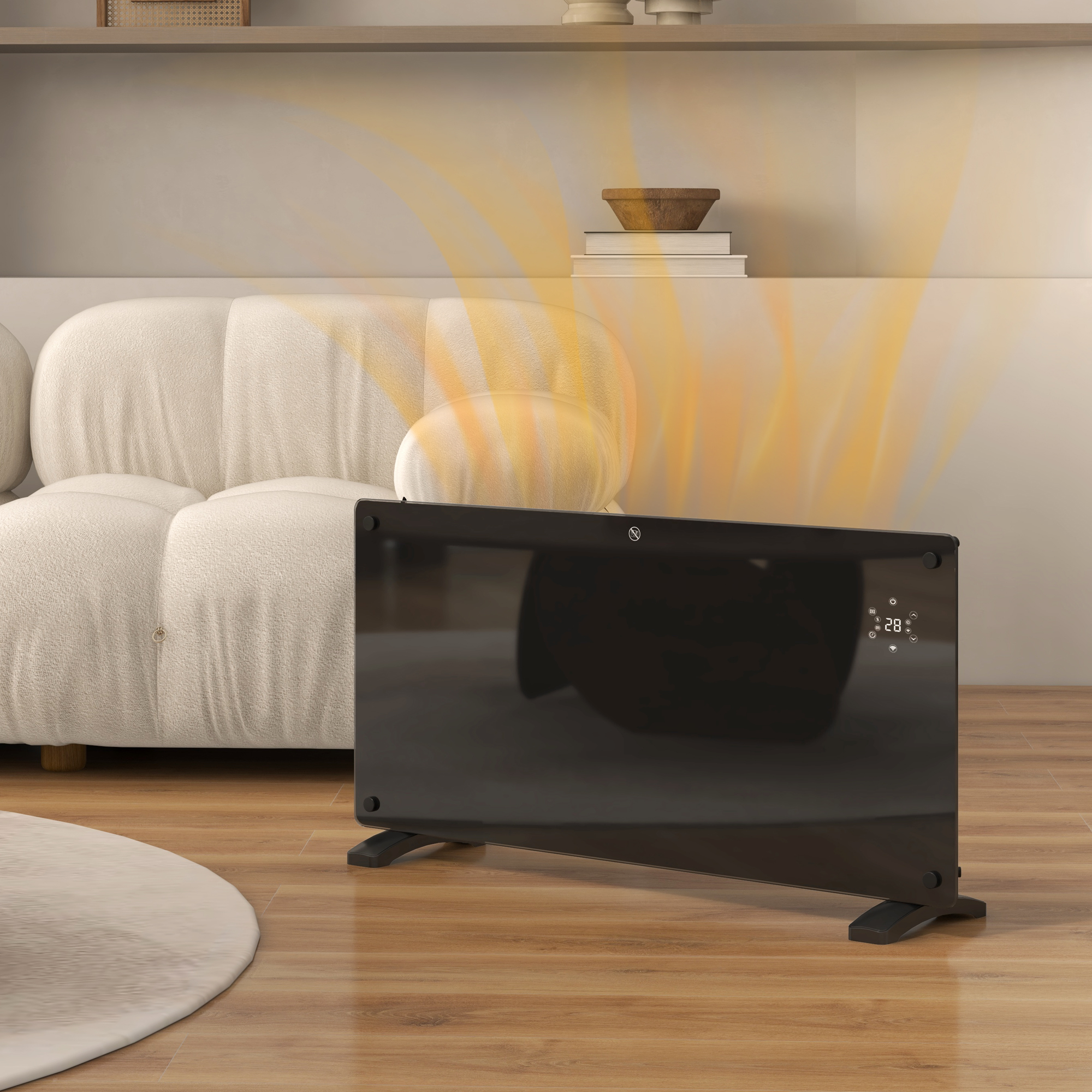 Say hello to a warmer place at home with this portable convector heater, from HOMCOM. It offers seamless control with the TUYA App, remote, or LED touch screen. It efficiently warms rooms of 15-22 ㎡ at temperatures between 5-35 ℃. Safety is prioritized with automatic shut-off, flame-retardant materials and a safety plug. Its sleek, portable design can be freestanding or wall-mounted, making it great for any space. Enjoy warmth, efficiency and safety all in one smart heater.