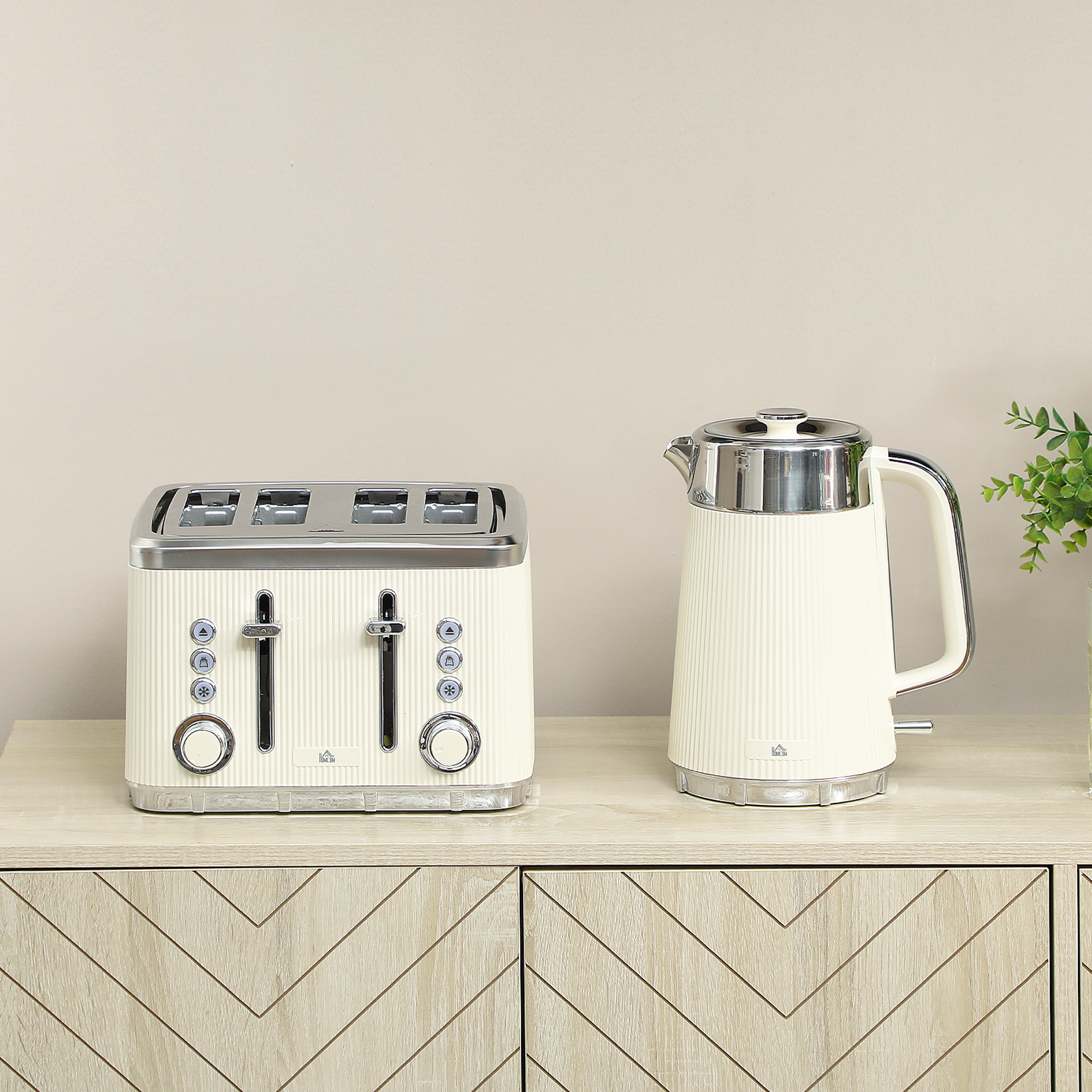- Set includes a kettle and 4-slice toaster, unified style