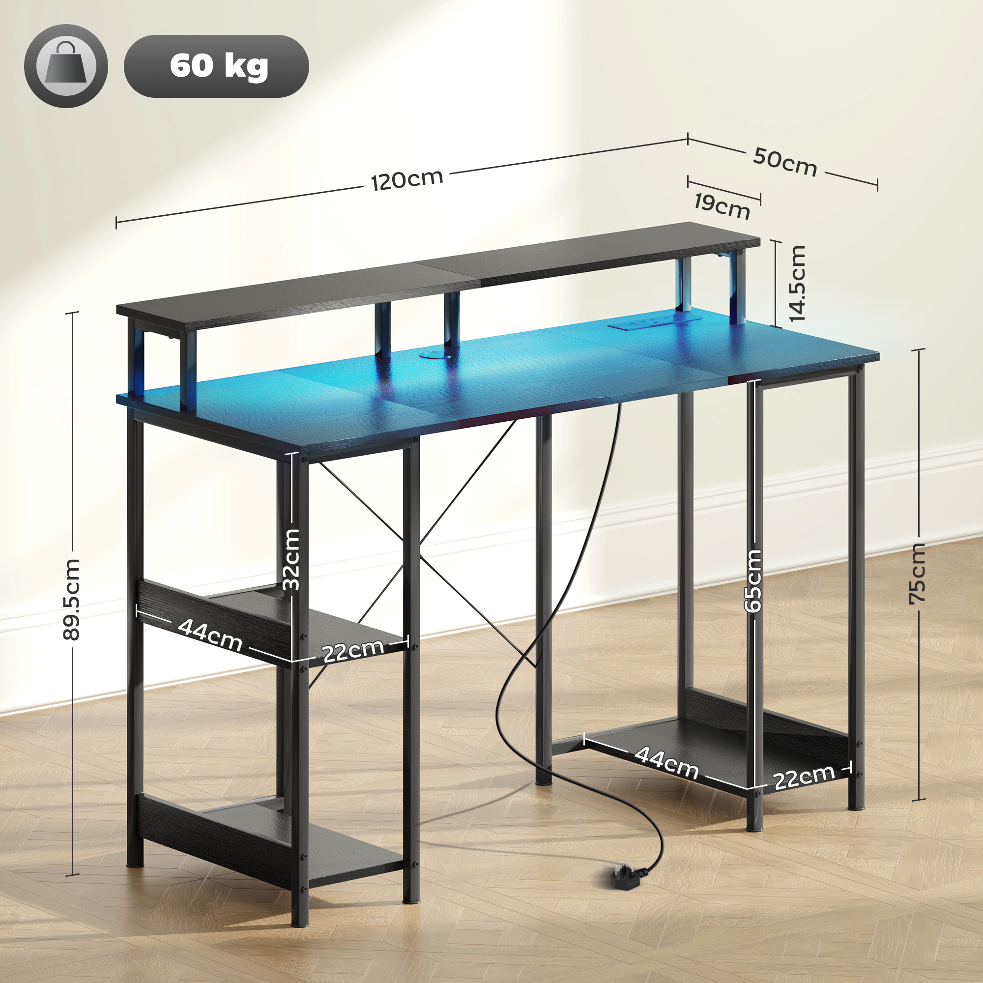 The HOMCOM computer desk offers plenty - the charging station has two UK plug sockets, a USB port and a USB-C socket for keeping electricals powered next to you as you work. With a large desktop to work, the writing desk also has an upper shelf for holding a screen at eye level to reduce neck strain. The RGB lights, with adjustable colours, brightness and modes, allow you to create the ambience you desire.