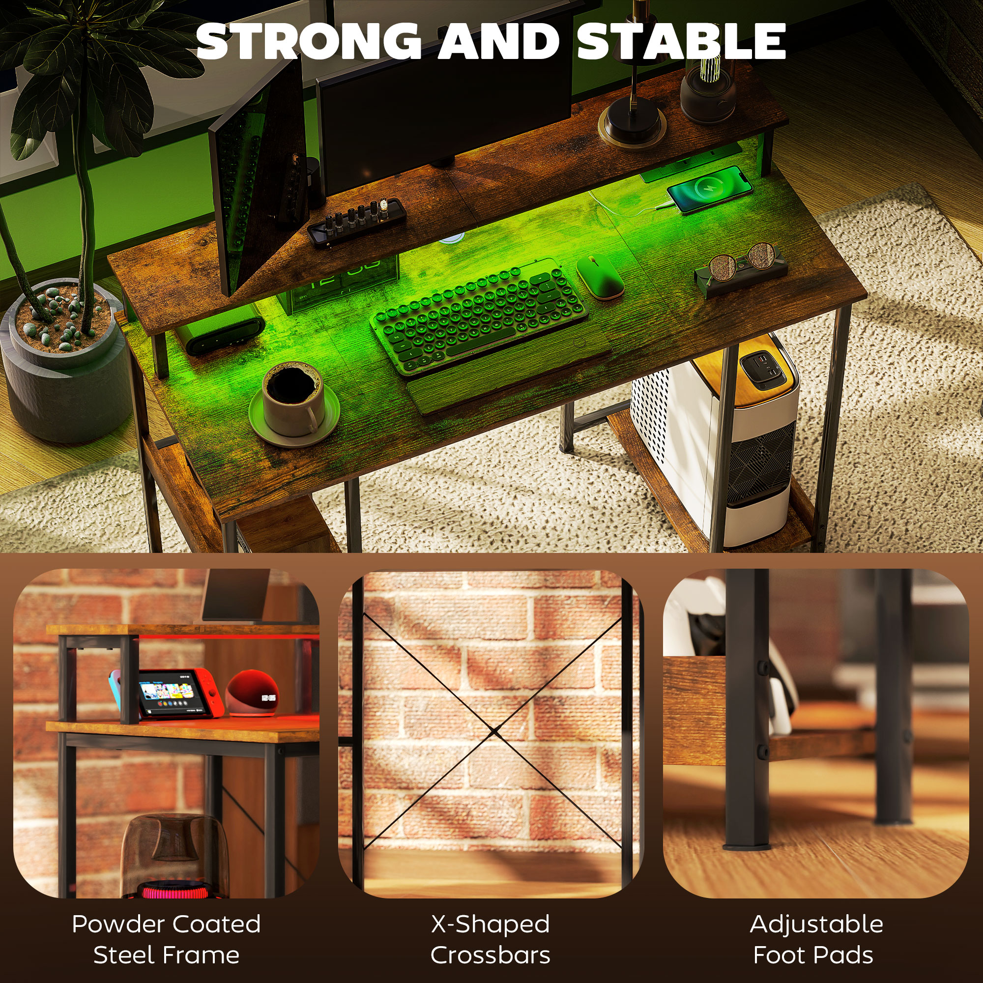 - Adjustable foot pads to keep bedroom desk steady and balanced