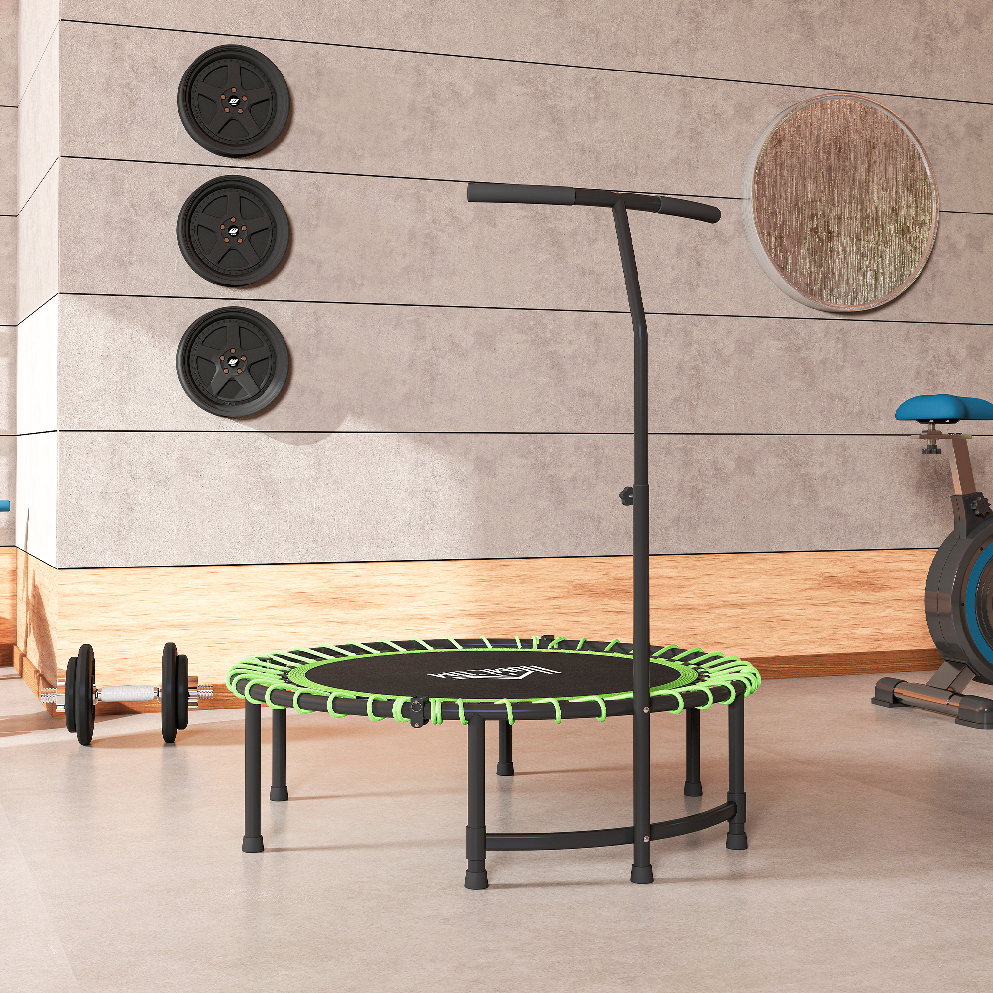 Whether you're looking to exercise inside, outside, or during your lunch break in the office, then this mini foldable trampoline from HOMCOM is great for helping you improve your fitness. Made from steel to support up to 100 kg, with a three-level adjustable T-bar for you to hold on to whilst you work out. It is made with steel legs for balance and stability, whilst the rubber caps help protect your floor beneath from any scratching and damage.