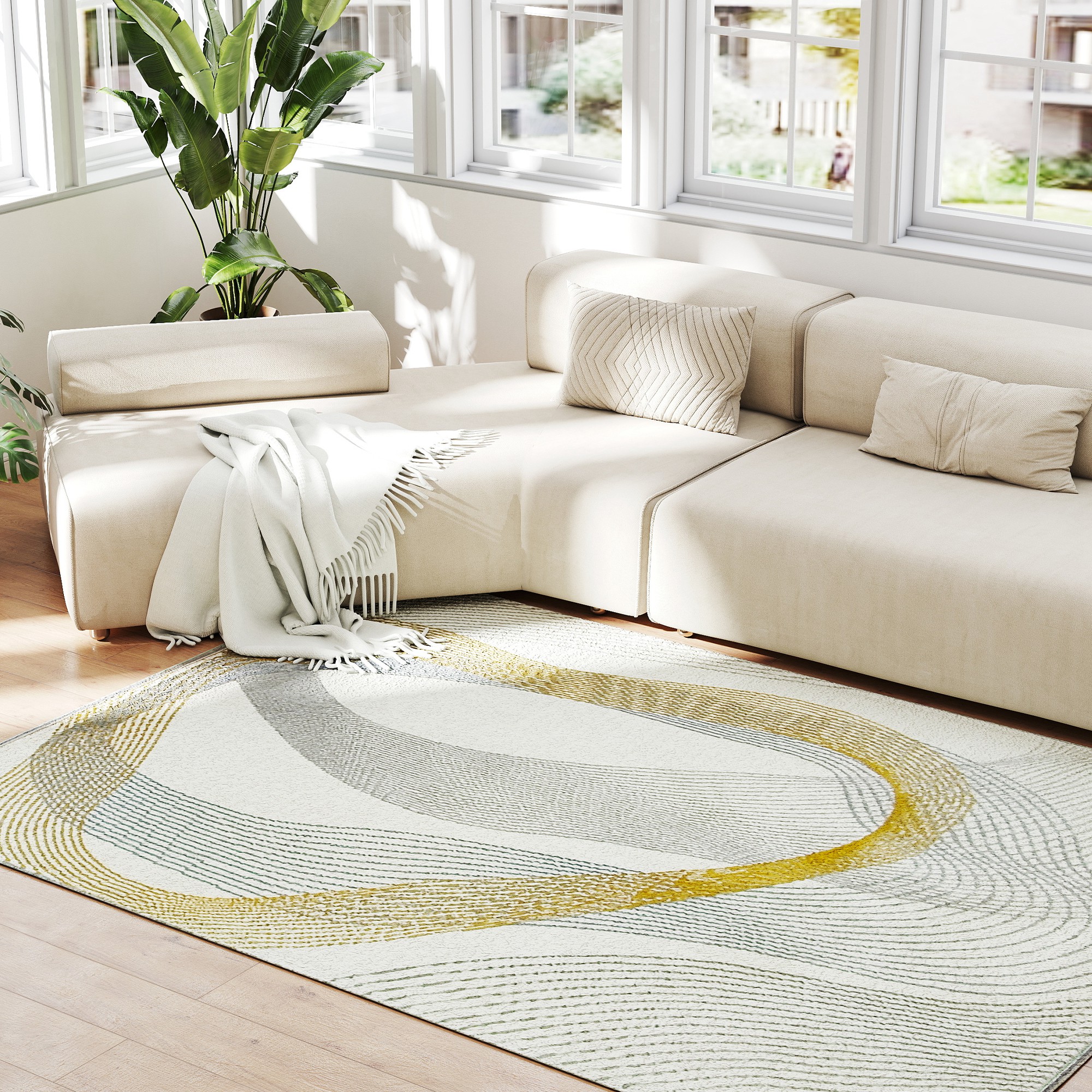 HOMCOM Modern Area Rug, Machine Washable Rug, Allergy-Friendly Floor Carpet for Living Room, Bedroom, Dining Room, Home Office, 170 x 120 cm, Cream White