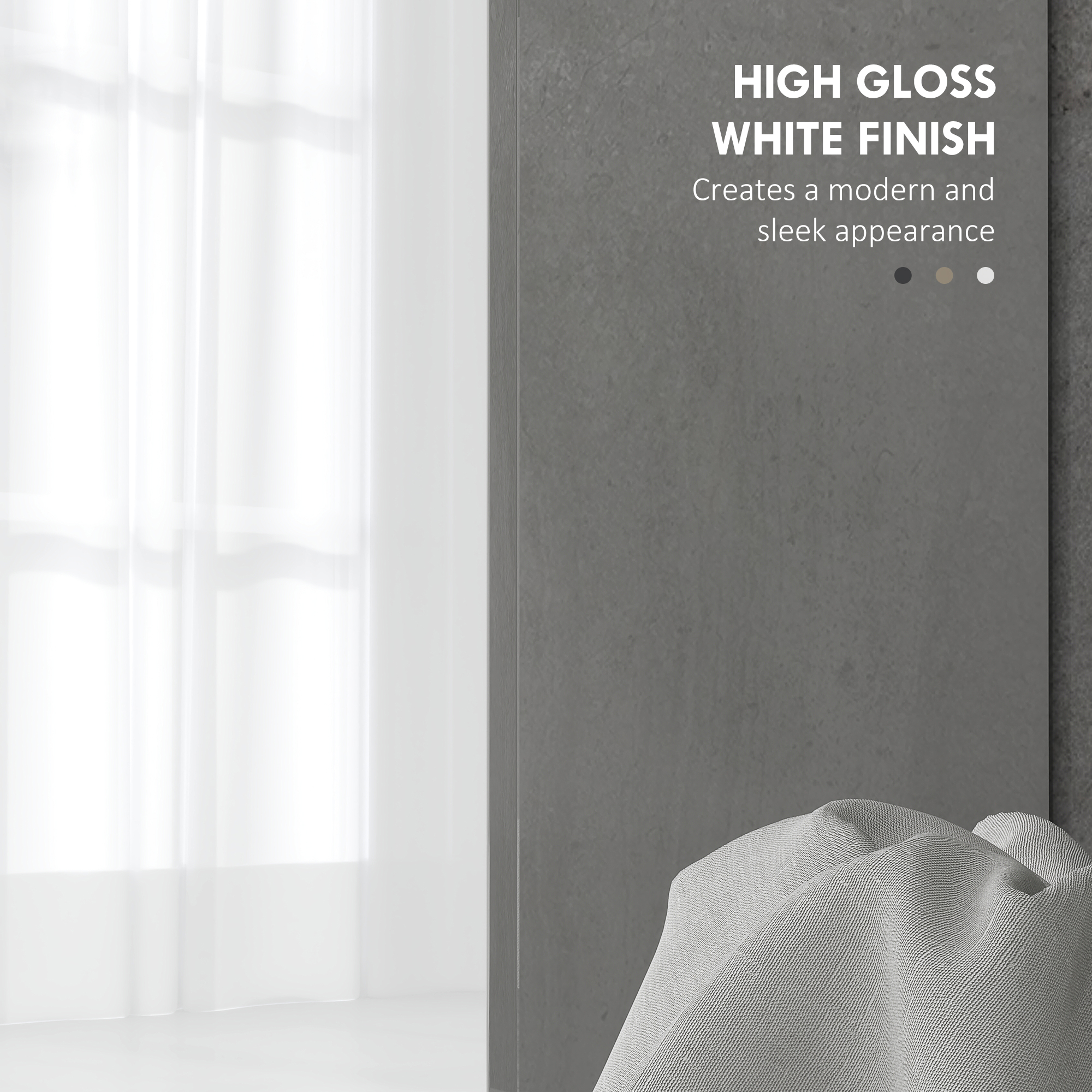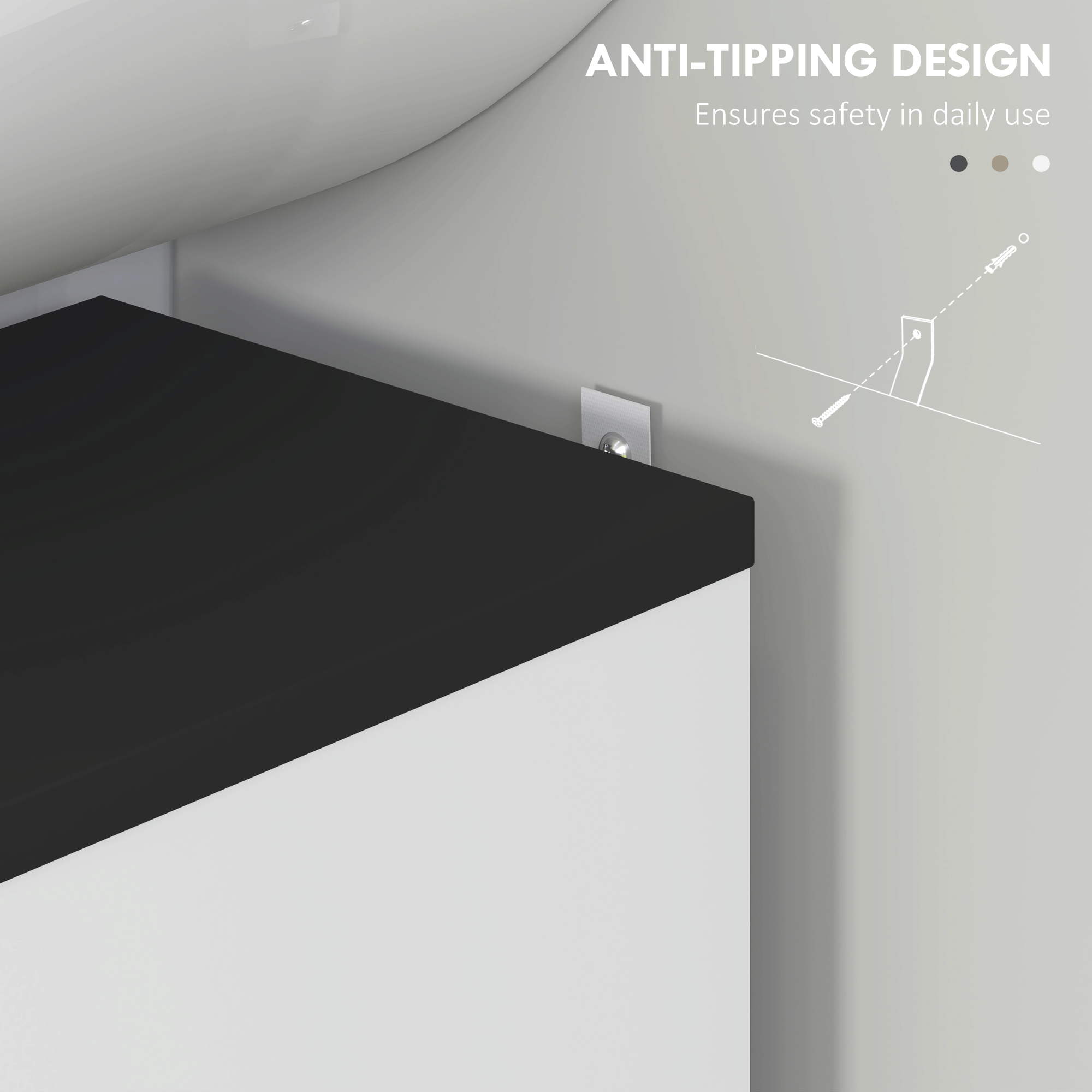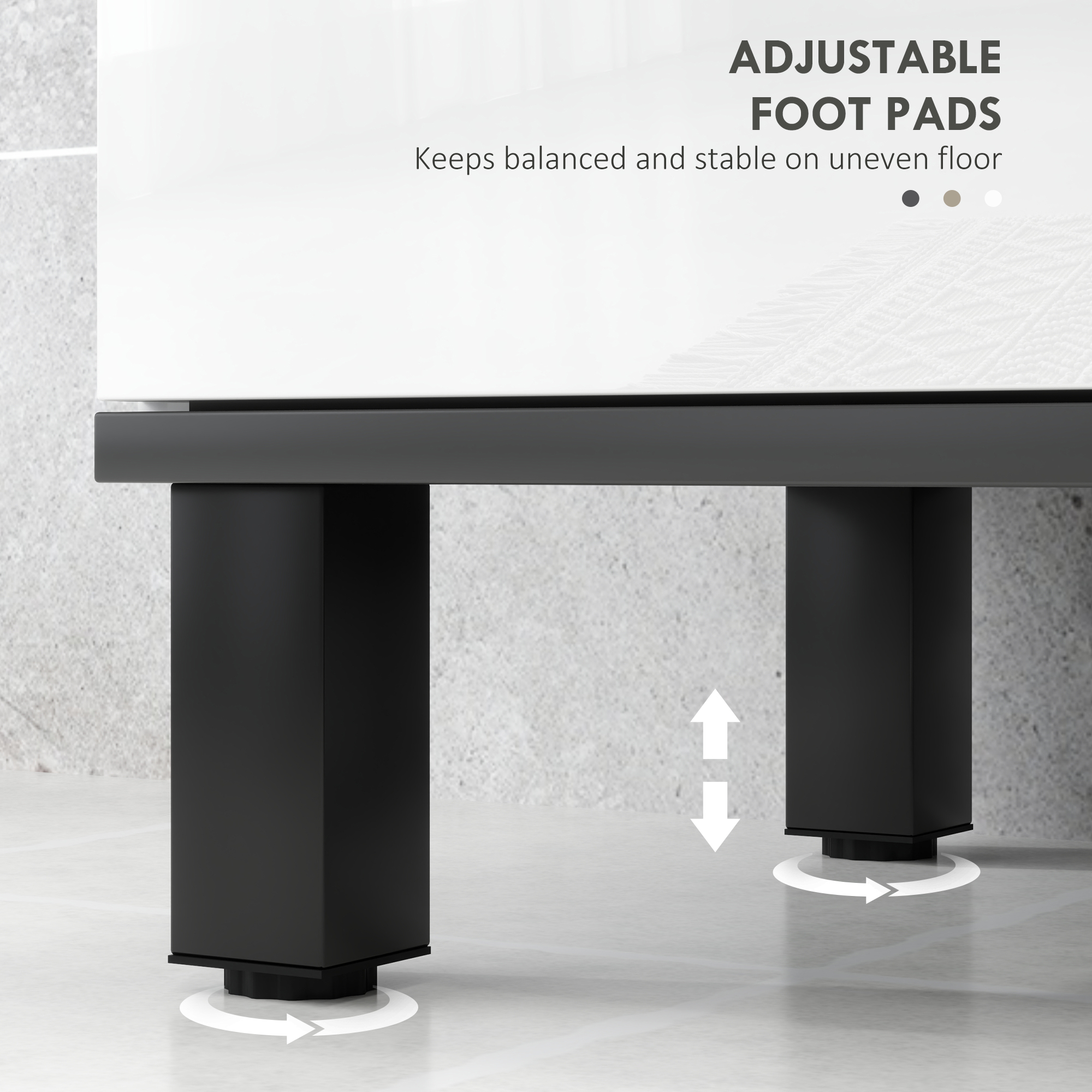 Maximise storage space with this HOMCOM bathroom sink cabinet. It has a 20 x 23 cm 'U' cut-out to fit under pedestal and non-pedestal basins. This under sink unit features an inner three-level adjustable shelf - plenty of room for bathroom essentials. Its high gloss white finish with a contrasting dark grey tabletop, black legs and handles adds a modern touch to every bathroom.