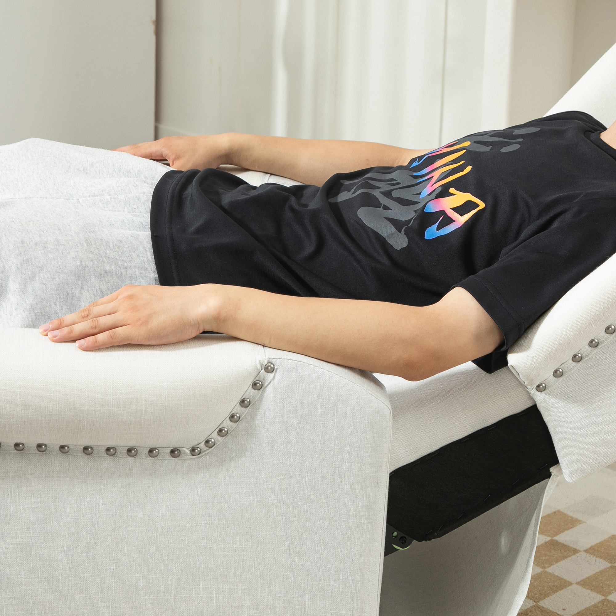 - Back manually reclines up to 150° angle, with a retractable footrest