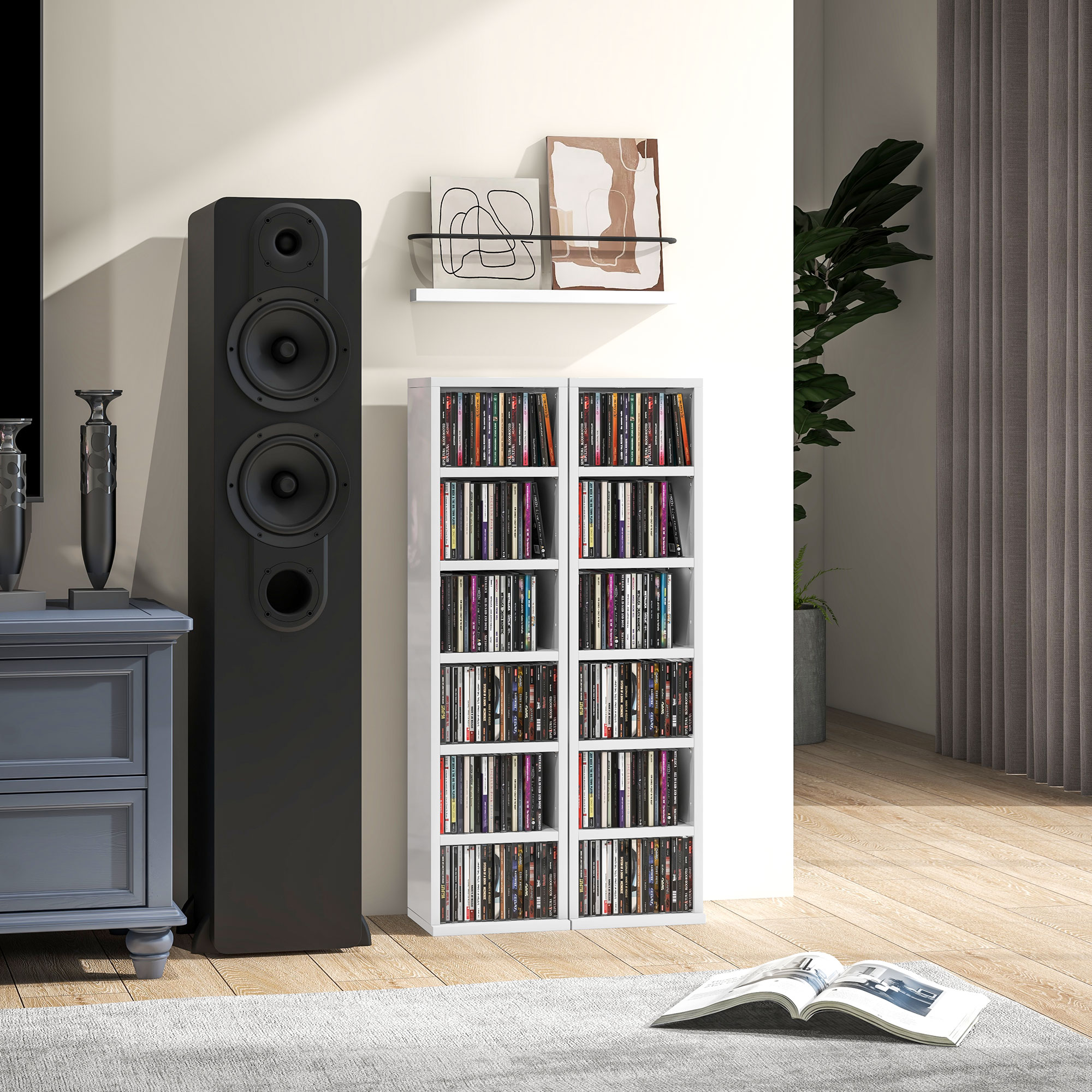 Display your coveted CD and digital media collection with pride - opt for this set of two shelves from HOMCOM. A six-compartment design, each unit can hold up to 102 CDs, giving you plenty of room for keeping everything together in a place. Made from particle board, the structure is solid and comes with wall fixing straps on the back, so it doesn't fall over - making it safe for all homes. Double the organization for a tidy and matching home.