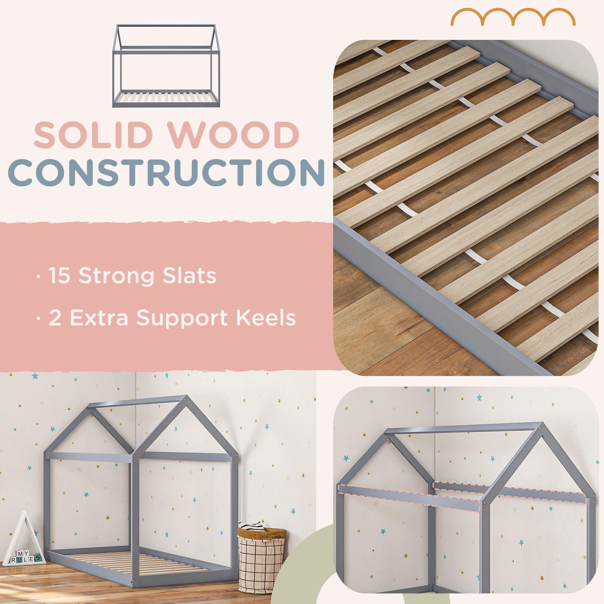 Transform your bedtime into a delightful adventure with the HOMCOM Single Bed Frame. This charming house-shaped wooden bed frame adds a sprinkle of fun, offering the canvas to drape twinkling lights or whimsical curtains. Its solid wood construction ensures a smooth, burr-free experience to keep you or little ones secure all night long.