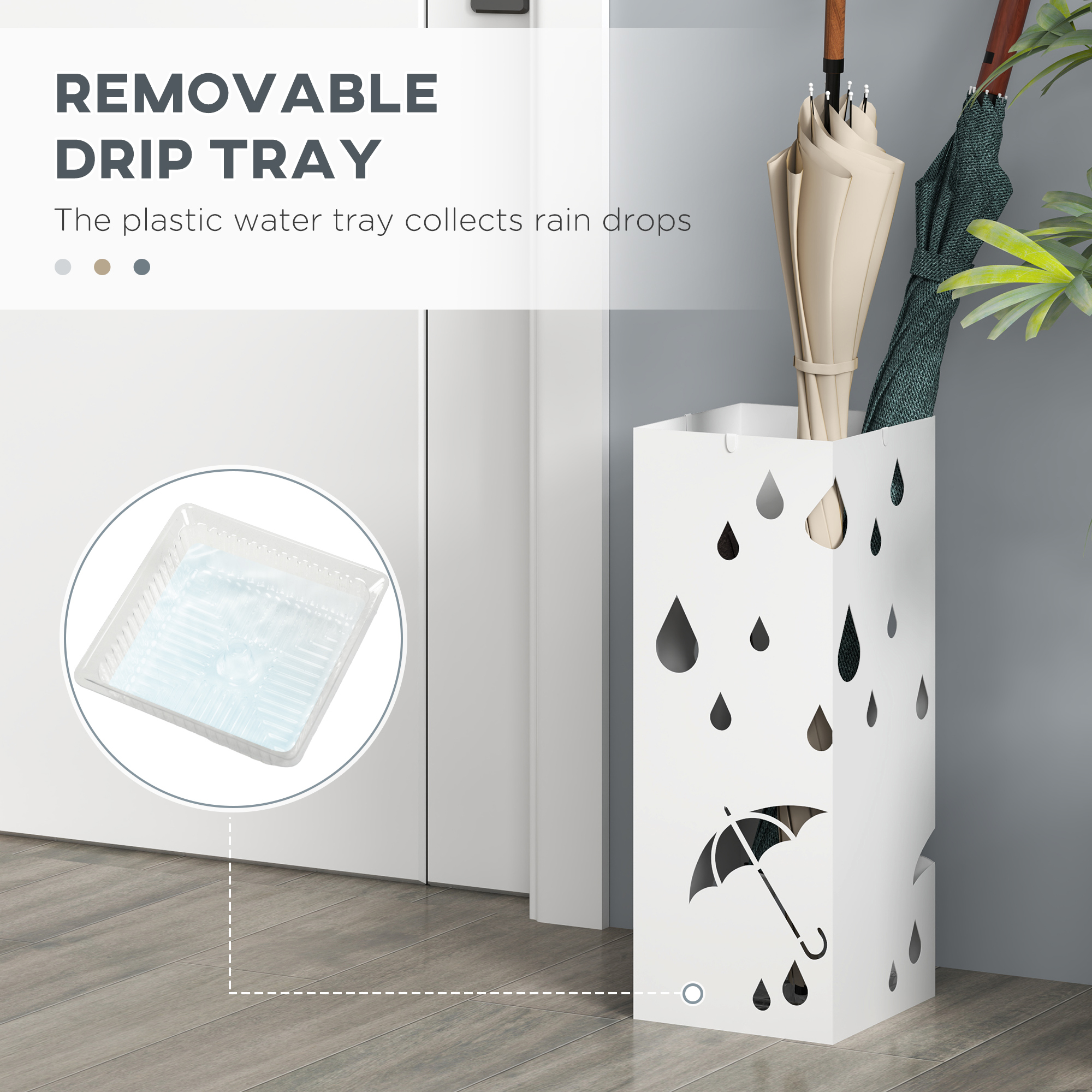 Rainy days mean umbrellas. And umbrellas can result in wet floors. Merging style and function, this HOMCOM umbrella holder for hallway gives umbrellas their own storage place, whilst bringing in a touch of style. Made from galvanised steel, this umbrella stand is strong and resistant to rusting. The 15.5 x 15.5cm size holds two large umbrellas, with four hooks included for smaller brollies. Comes with a removable bottom tray to easily remove any liquid.