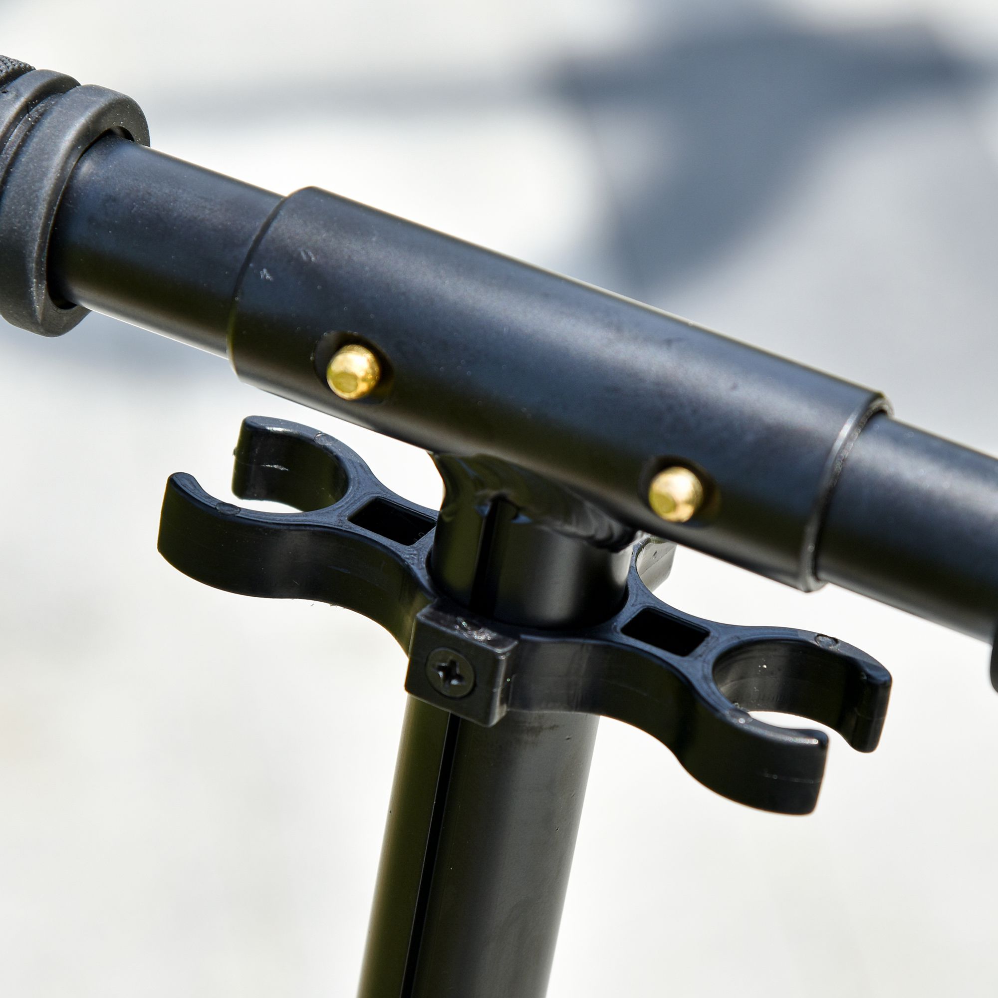 Cut down time spent getting around town with this silver coloured kick scooter from HOMCOM. Using aluminium to ensure a frame which is just as durable and reliable as it is lightweight, the scooter is made with a wealth of impressive features for the ultimate ride: a three-level adjustable handlebar, a wide foot board, comfortable grip handles with a front and back brake – giving you two ways to stop whilst whizzing along. Safe as it is fun, two slip-resistant tyres pair with the shock mitigation system for a smooth and comfortable journey every time. A quick-fold design which allows it to be picked up and carried around easily. For children aged 14 years and above.
