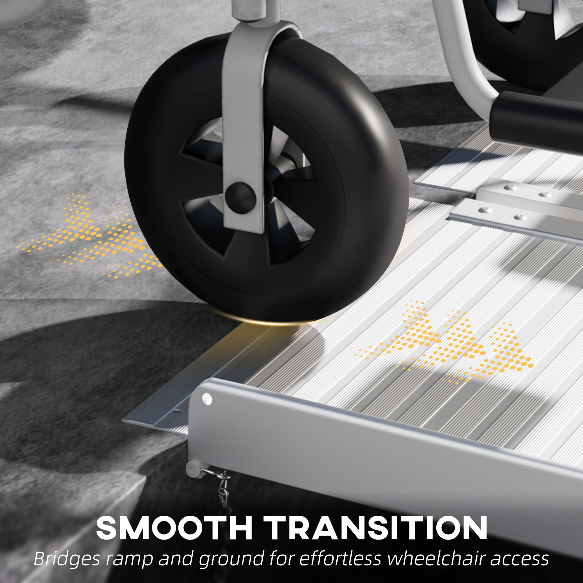 Let HOMCOM help create complete, easy mobility with our wheelchair ramp. Built from a sturdy, anti-corrosive aluminium alloy, this portable ramp uses a ribbed surface to prevent sliding in any weather and has two high side walls to help prevent accidental falls. The threshold ramps is 183cm long, and applicable height is 17-45cm, recommended height is 17-30cm. Not only for use with wheelchairs, this ramp provides ease of access for scooters, bikes and any other unwieldy wheeled object.