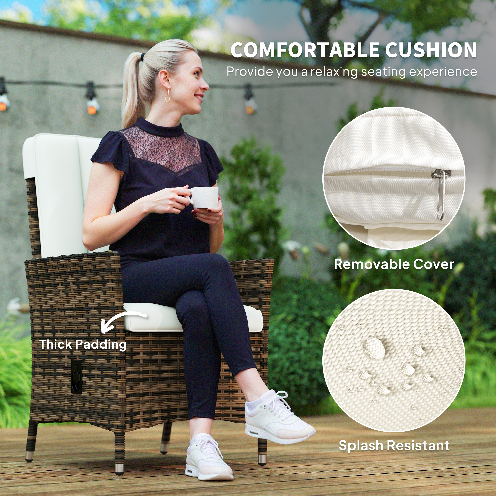 Comfort your way with this Outsunny rattan recliner chair. Adjust the back easily between 105°-150°: lie back to the position you want. It comes with a thick padded seat cushion for comfort, with washable covers to ensure they keep clean. Using powder coated steel for a strong core, wrapped in stylish and protective plastic rattan to finish.