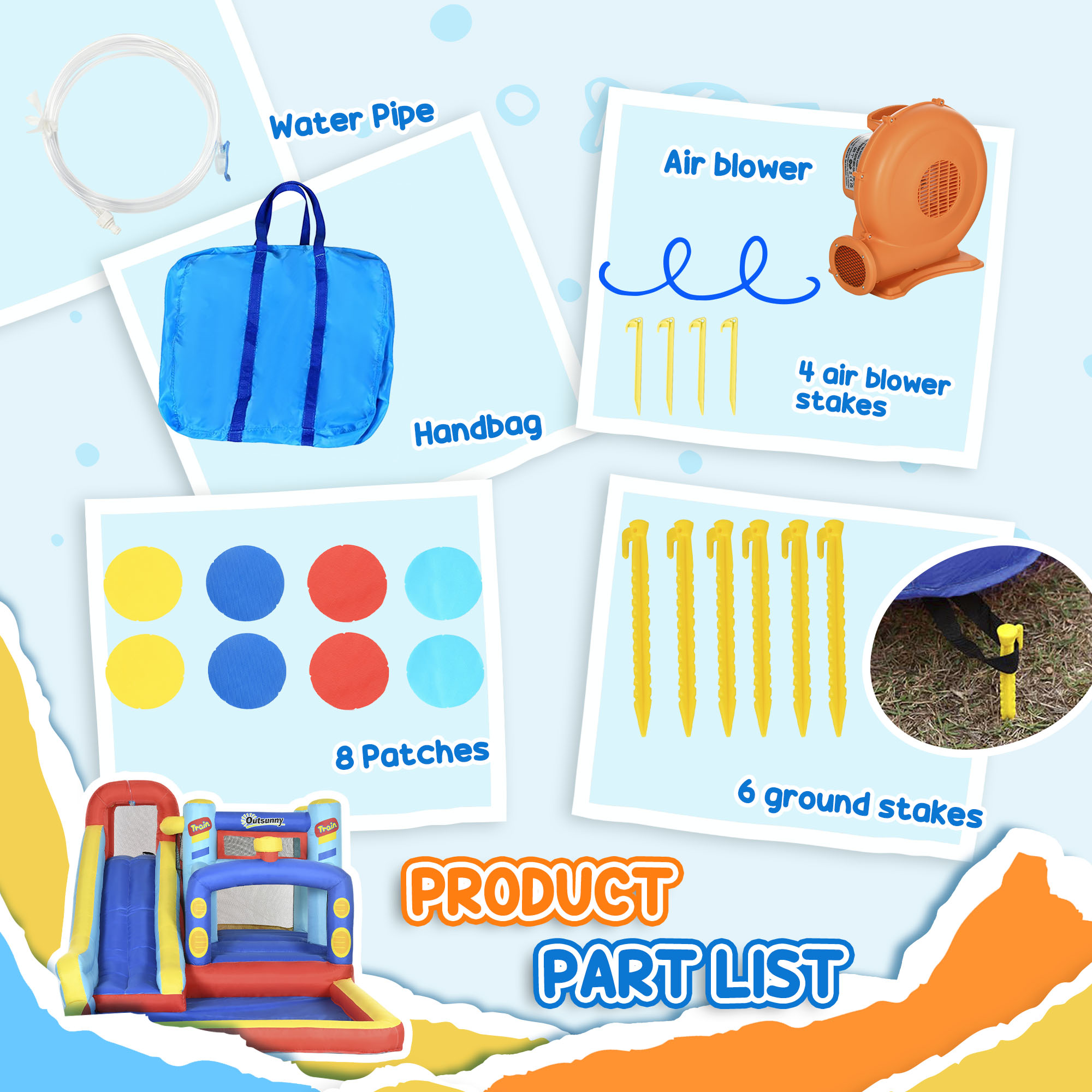 Turn your garden into a mini water park with this Outsunny bouncy castle! With so many fun features, kids will stay active and entertained for hours. Big enough for three children at once – great for parties and playdates. Ground stakes keep it secure, even on breezy days, while the included air blower gets it ready in minutes. Outdoor fun just got a whole lot better.