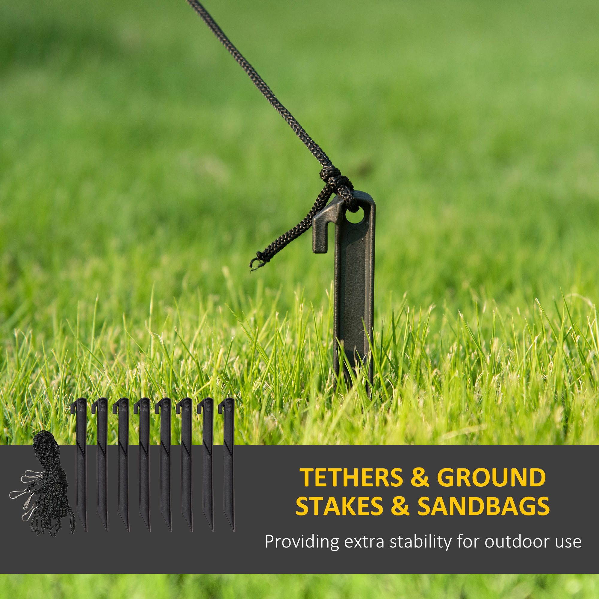 - Eight ground stakes, four guy ropes and four sandbags included to pin and stabilise to the ground