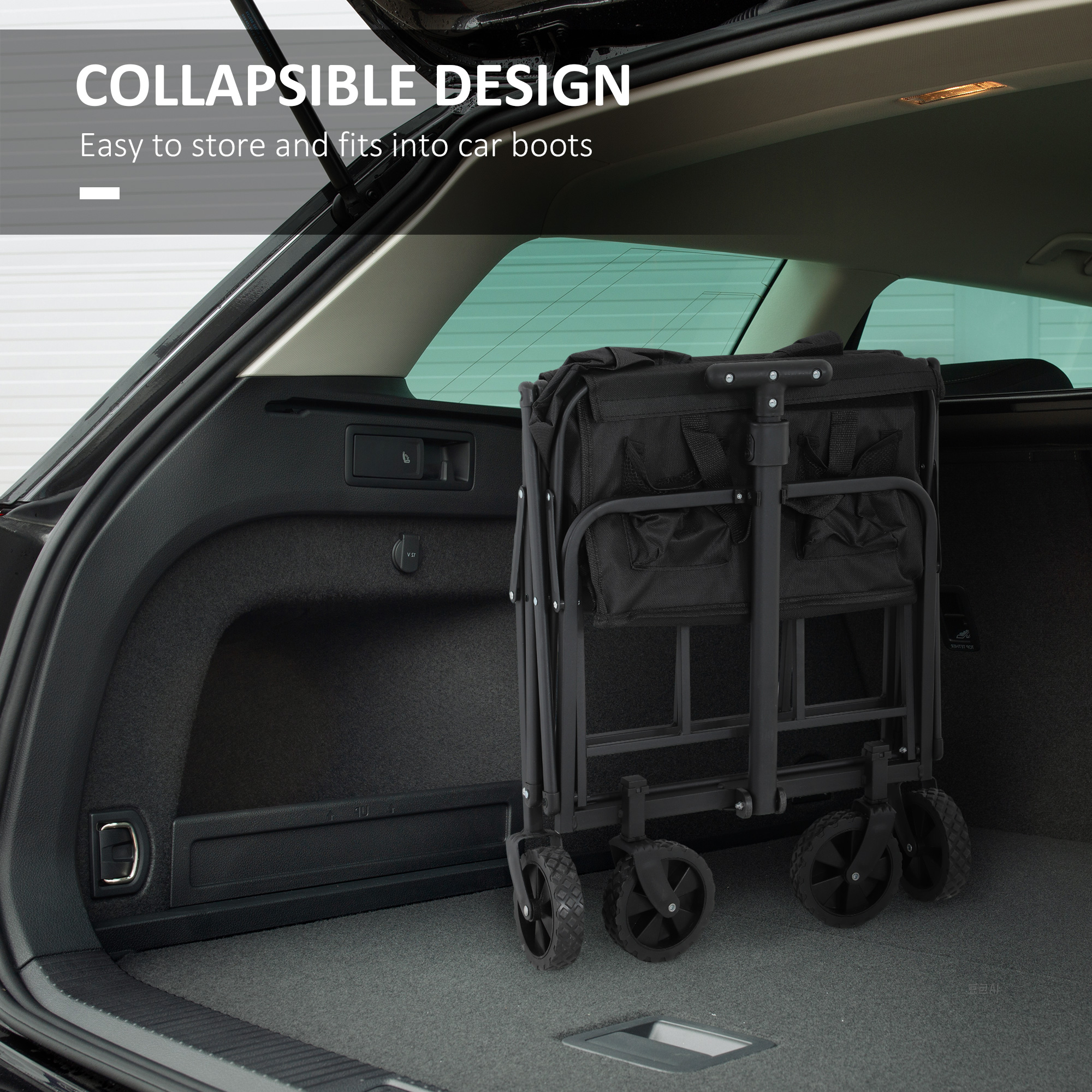 Outsunny 62L Festival Trolley on Wheels, Garden Folding Trolley Cart, 120kg Heavy Duty Collapsible Folding Wagon with Adjustable Handle and Carrying Bag for Beach, Camping, Festival, Black