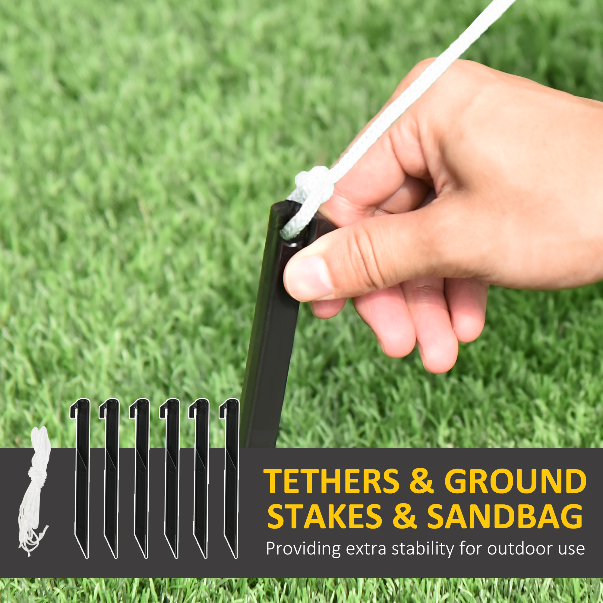 - Six ground stakes, two guy ropes and a sandbag to pin and stabilise to ground