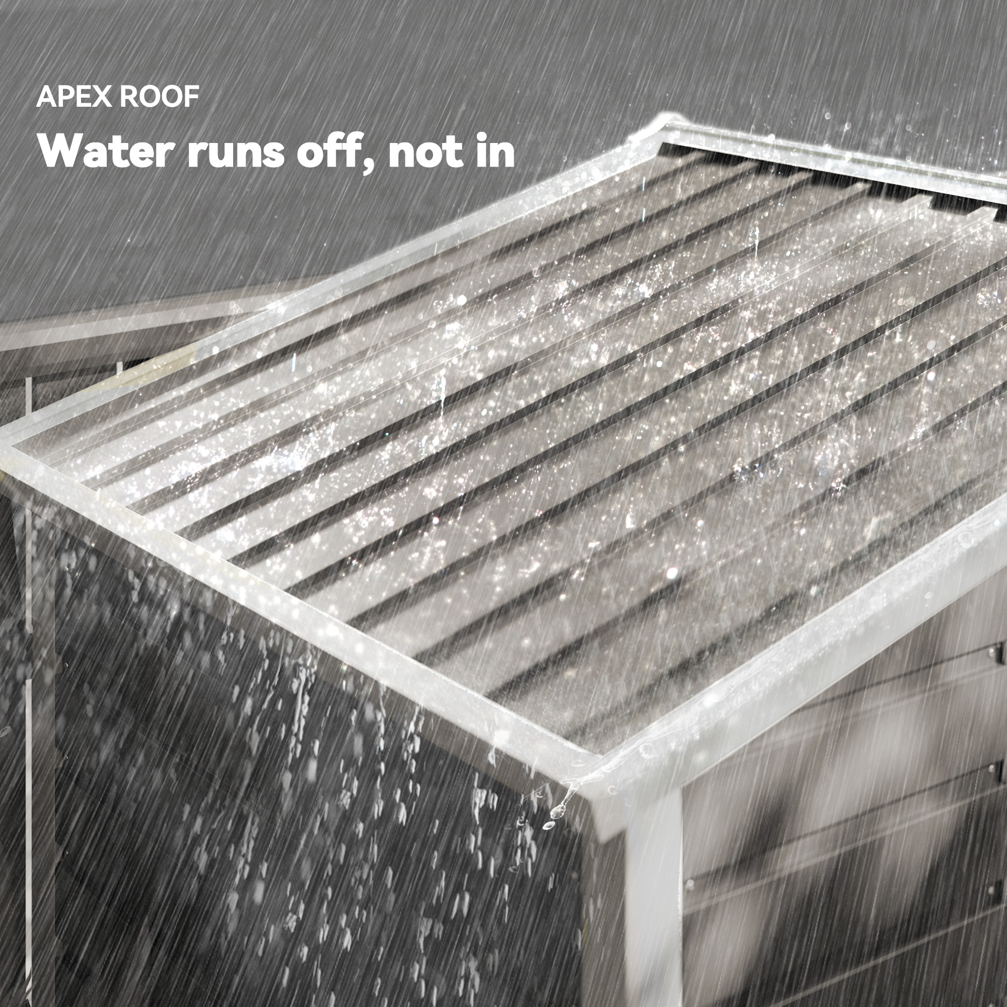 • Apex roof design prevents water and snow build-up