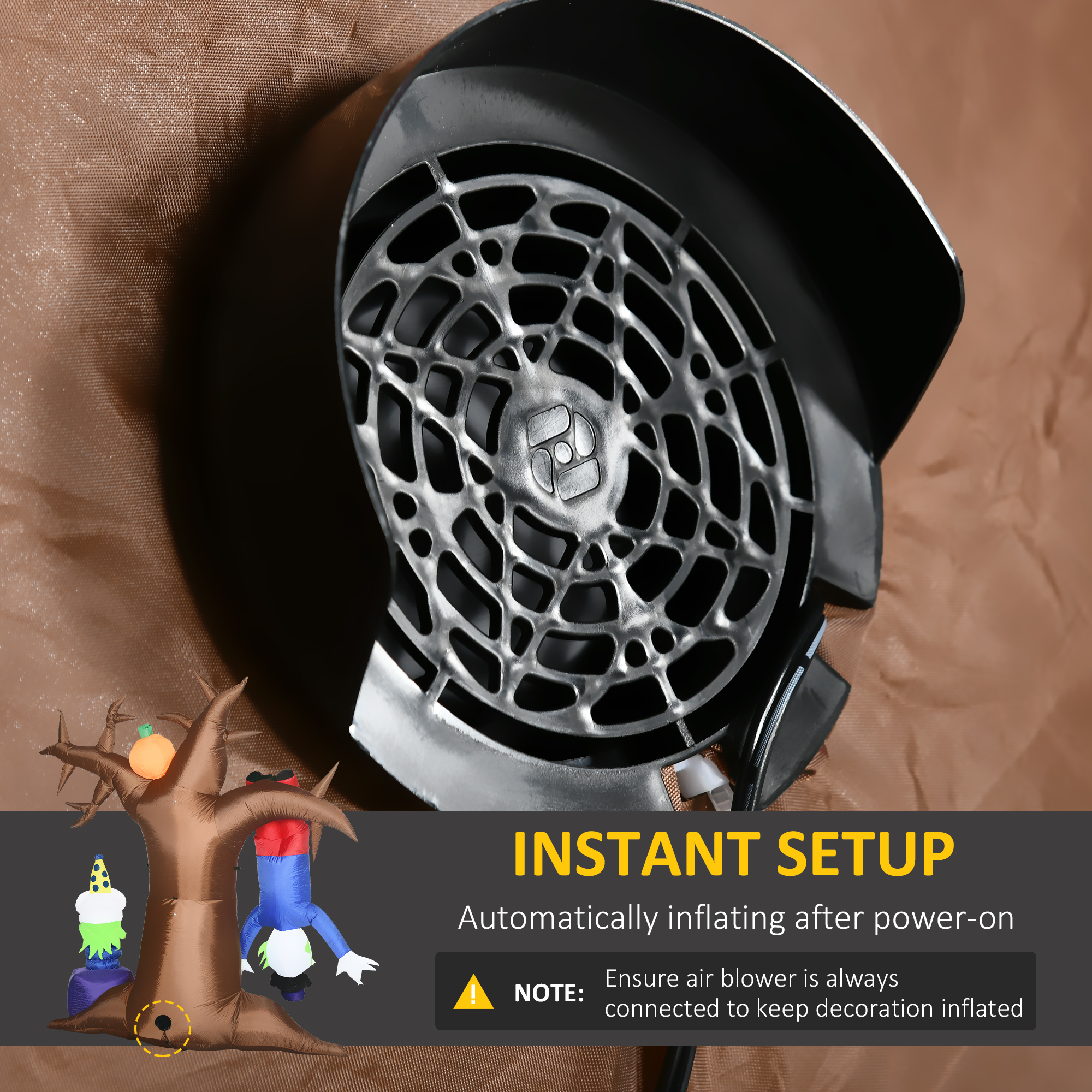 - NOTE: Ensure the air blower is always connected to a power source to keep the Halloween Ghost Tree inflated