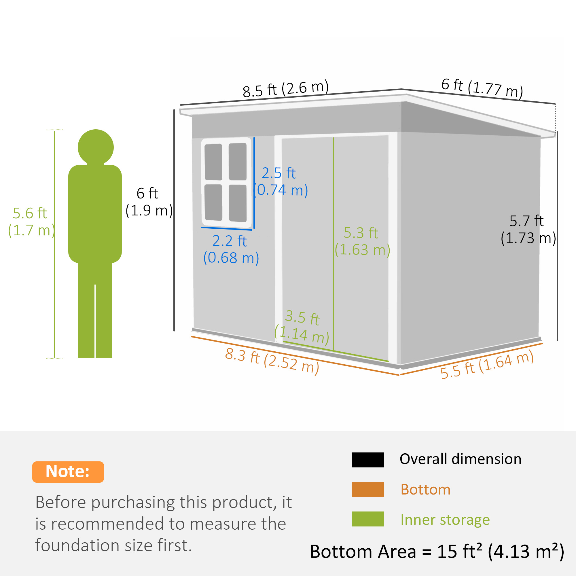 Transform your outdoor space with the Outsunny garden storage shed, a robust garden haven measuring 260 x 177 x 190 cm. This outdoor shed features a natural light-admitting transparent window and efficient vents for air circulation. The spacious 114cm doorway ensures easy access, complete with a secure latch and lock system, making this outdoor storage shed an exemplary choice for any garden enthusiast.